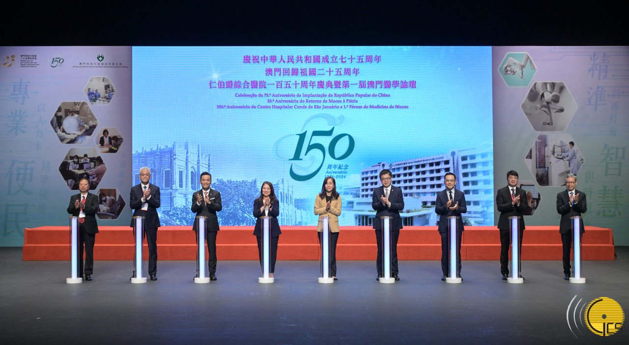 • The Secretary for Social Affairs and Culture, Ms Ao Ieong U, attends the opening ceremony of the first Macao Medical Forum, in celebration of the 75th anniversary of the founding of the People's Republic of China, the 25th anniversary of the establishment of the Macao Special Administrative Region, and the 150th anniversary of Conde S. Januário Hospital.