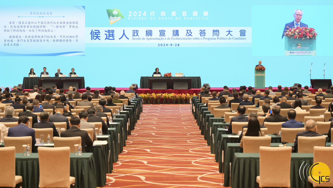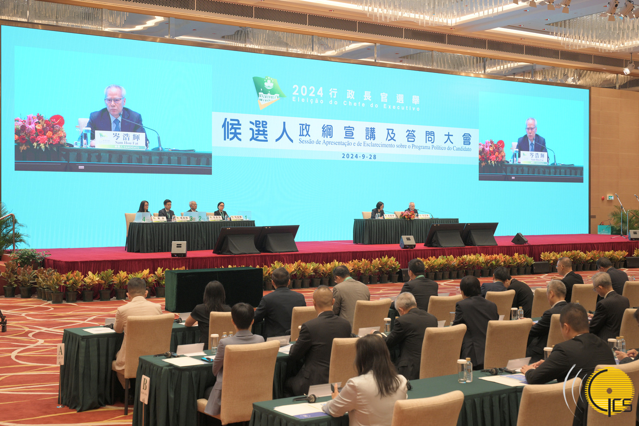 • The candidate of the 2024 Chief Executive Election, Mr Sam Hou Fai, presents his political platform.