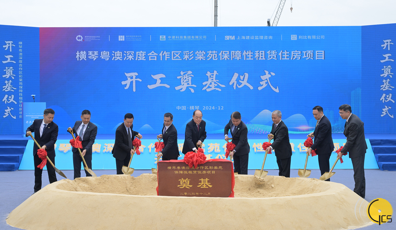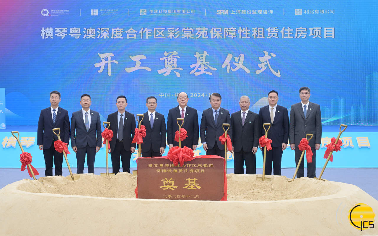 The Chief Executive, Mr Ho Iat Seng, attends the groundbreaking ceremony for the Cai Tang Yuan government-subsidised rental housing project at the Guangdong-Macao Intensive Cooperation Zone in Hengqin.