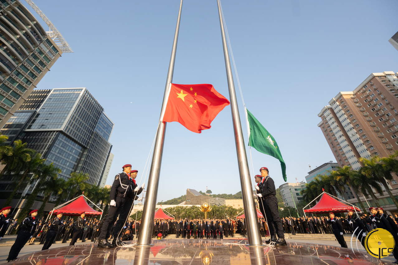 • The flag-raising ceremony in celebration of the 25th anniversary of the establishment of the Macao Special Administrative Region is held at the Golden Lotus Square.