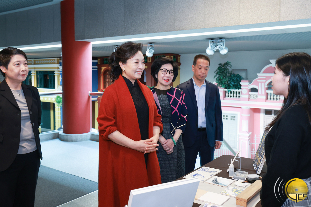 • On the morning of 19 December, wife of President Xi Jinping, Madame Peng Liyuan, visits the Macao Museum, in the company of wife of Chief Executive of the Macao Special Administrative Region Ho Iat Seng, Madame Cheng Soo Ching. In this picture, Madame Peng had a cordial exchange with an inheritor of Portuguese Azulejo Tiles, a form of intangible cultural heritage. (Photo from Xinhua)