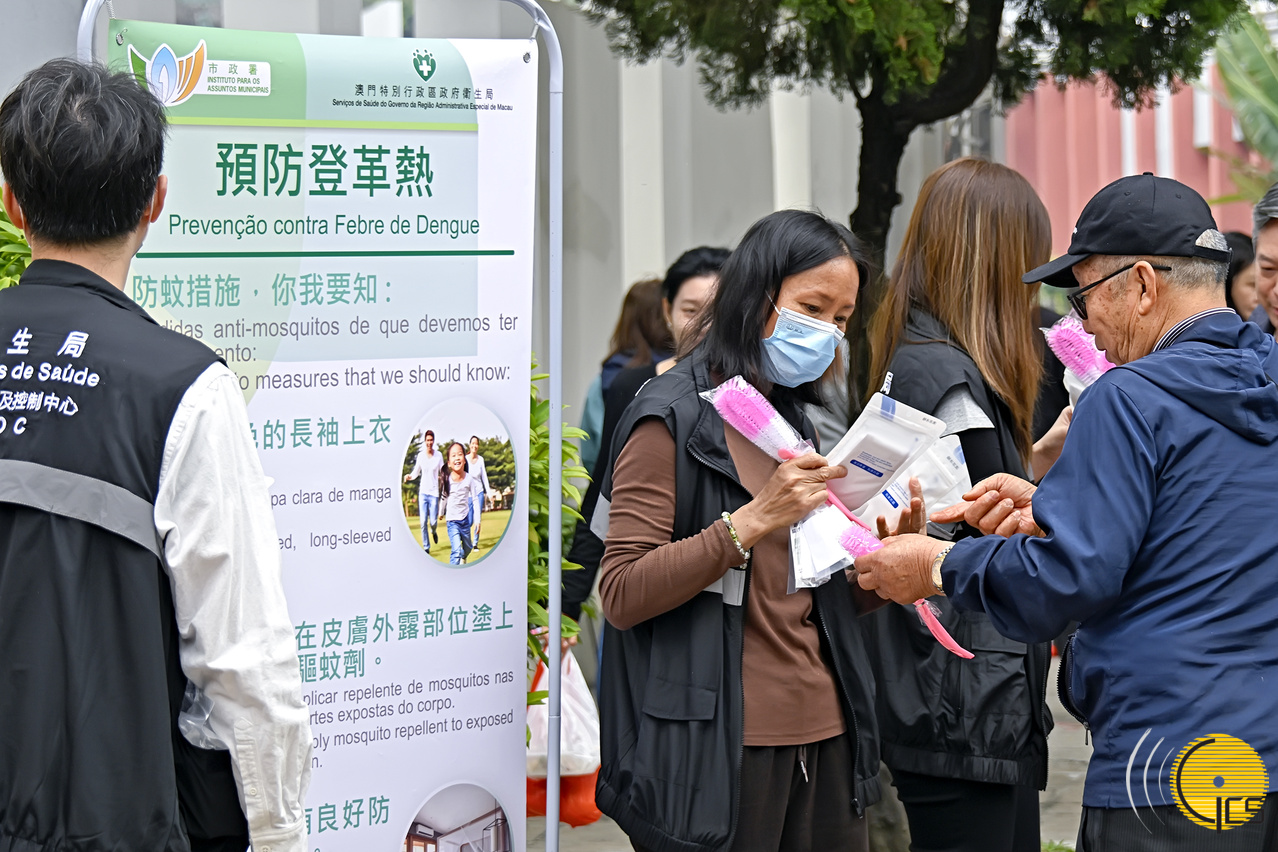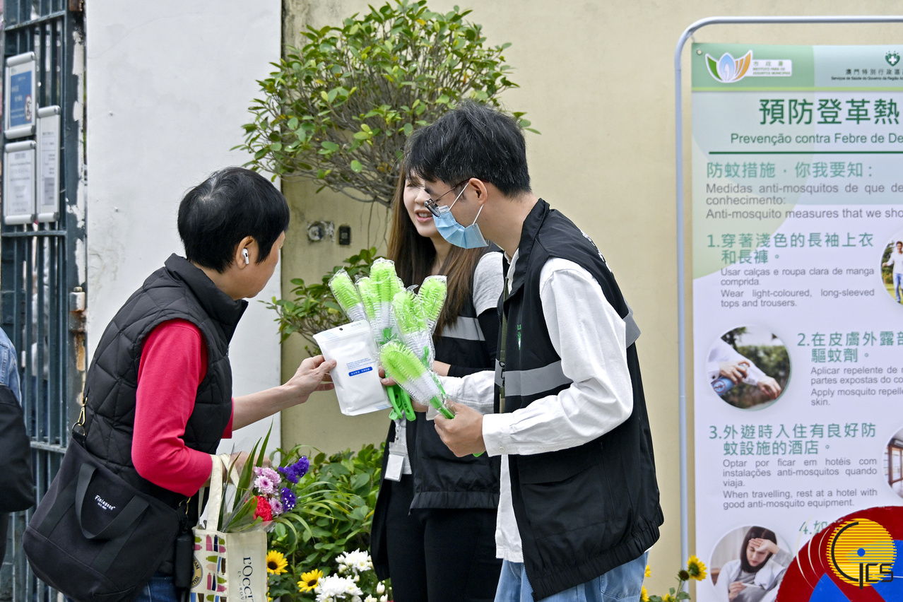 • Working Group on the Prevention of Dengue Fever members give leaflets to members of the public on Ching Ming Festival, urging them to stay alert on mosquito-borne diseases, take personal protective measures, and take heed of removing stagnant water in household and workplace settings to stop mosquitoes from breeding.