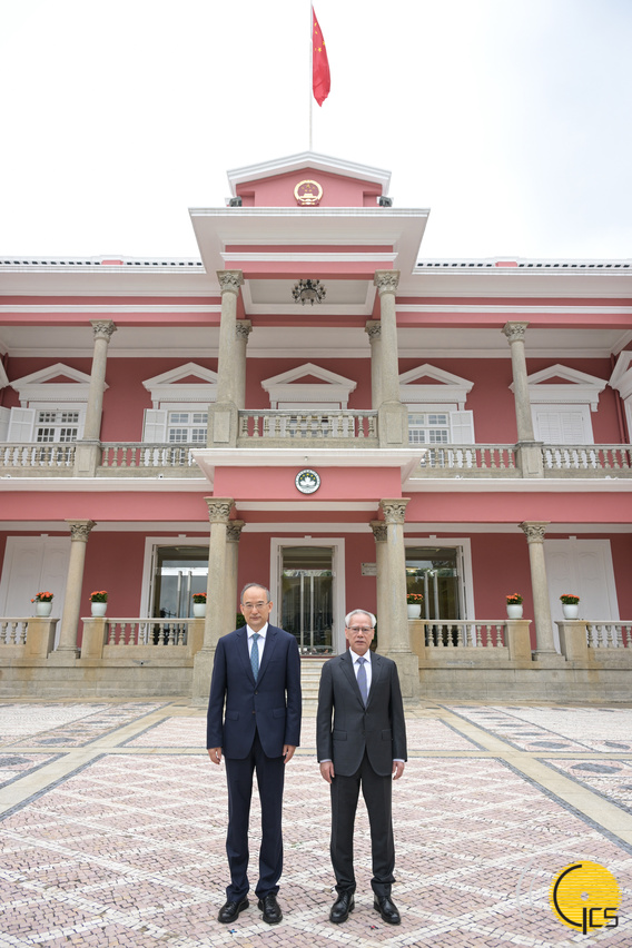 • The Chief Executive, Mr Sam Hou Fai, poses for a photograph with the Secretary of the CPC Jilin Provincial Committee, Mr Huang Qiang, at the Government Headquarters in Macao.