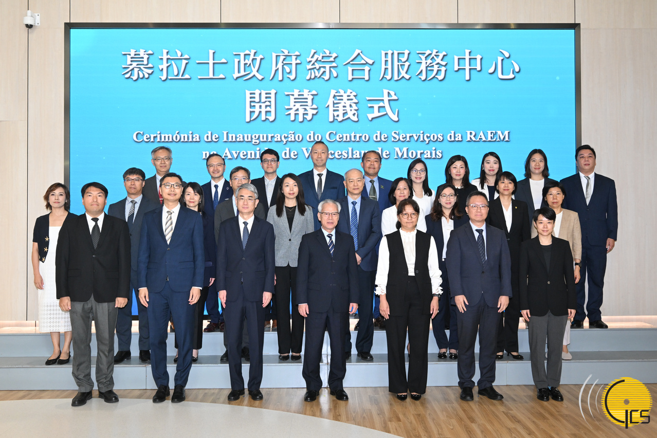 • The Chief Executive, Mr Sam Hou Fai, poses for a group photograph with guests attending the plaque unveiling ceremony of the Macao Government Services Centre in Avenida de Venceslau de Morais.