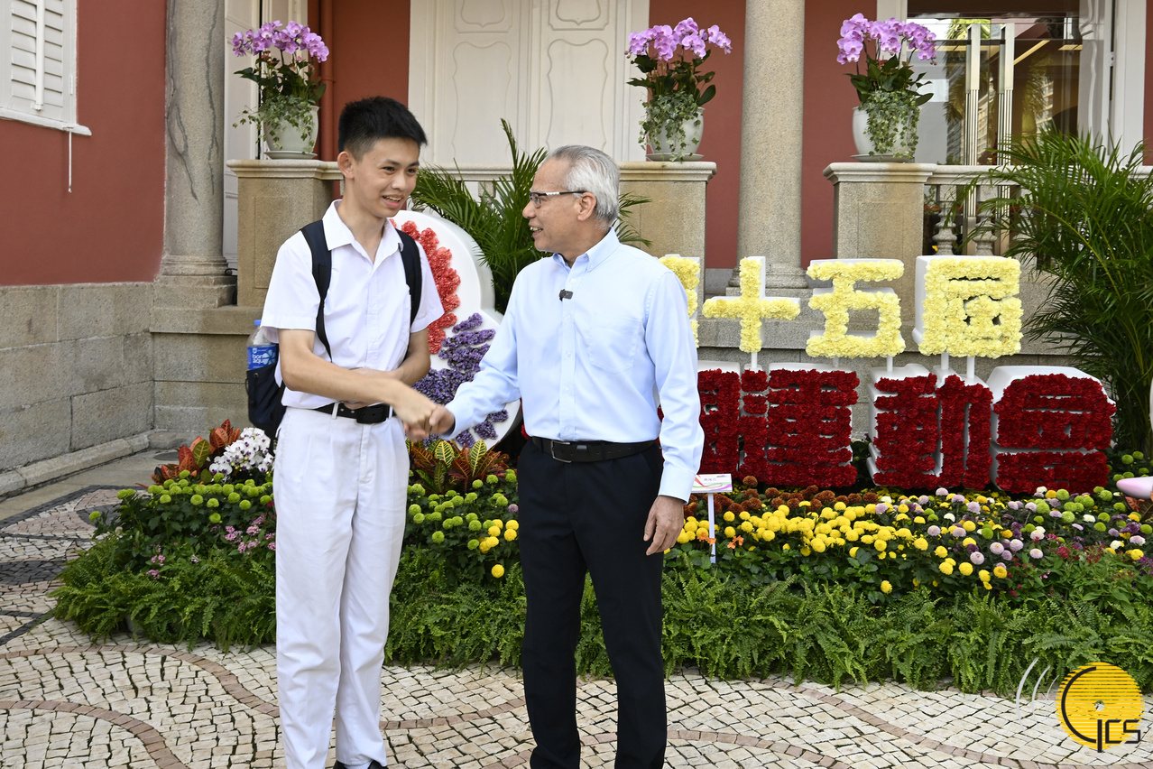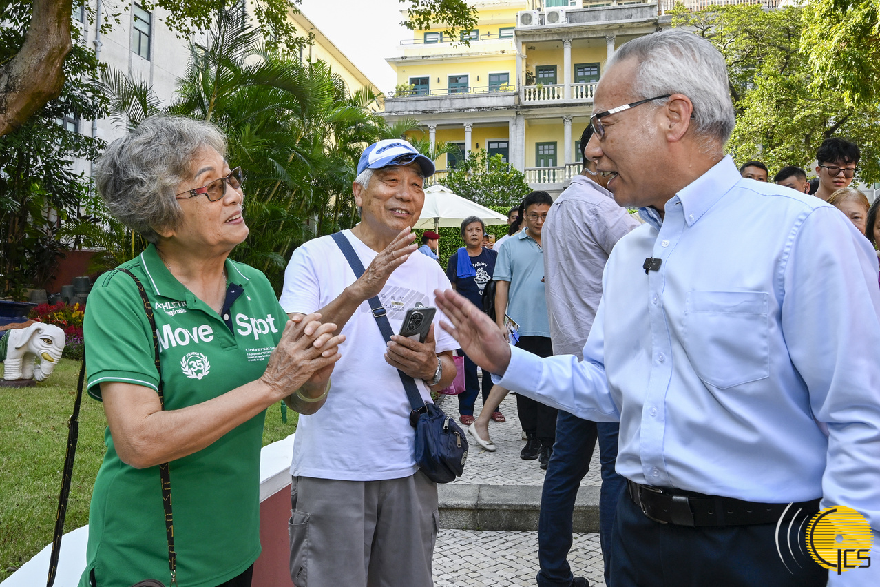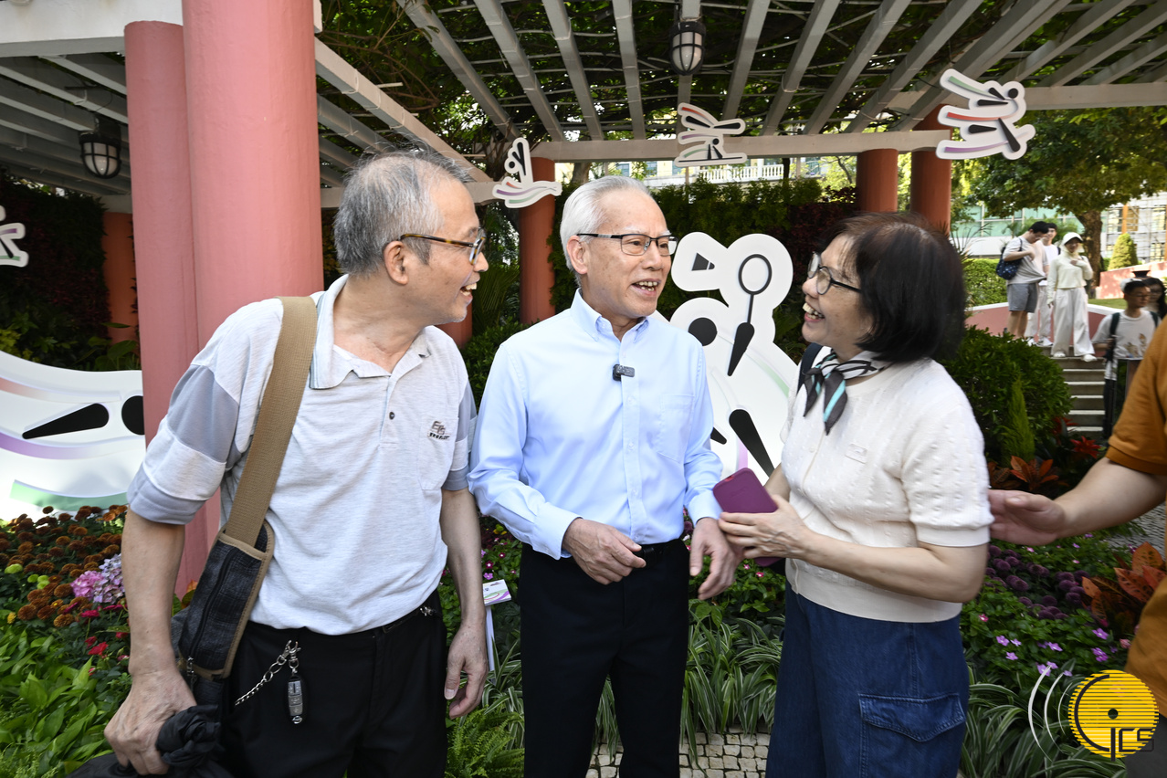 • The Chief Executive, Mr Sam Hou Fai, shares with visitors the delight of attending the first day of the Government Headquarters Open Day sessions