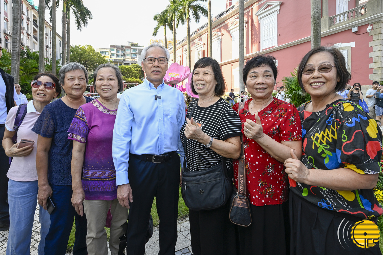 • Members of the public are thrilled at the chance to meet the Chief Executive, Mr Sam Hou Fai, during the initial Government Headquarters Open Day session, and are delighted to pose with him for a group photograph.