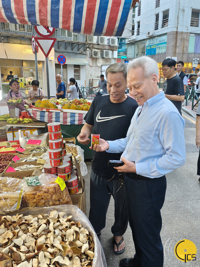 • After joining the Government Headquarters Open Day session, the Chief Executive, Mr Sam Hou Fai, visits Rua de Emanda for grocery shopping, where he talked with local merchants to understand trading situation of small and medium-sized enterprises and garner first-hand insight into public sentiment.