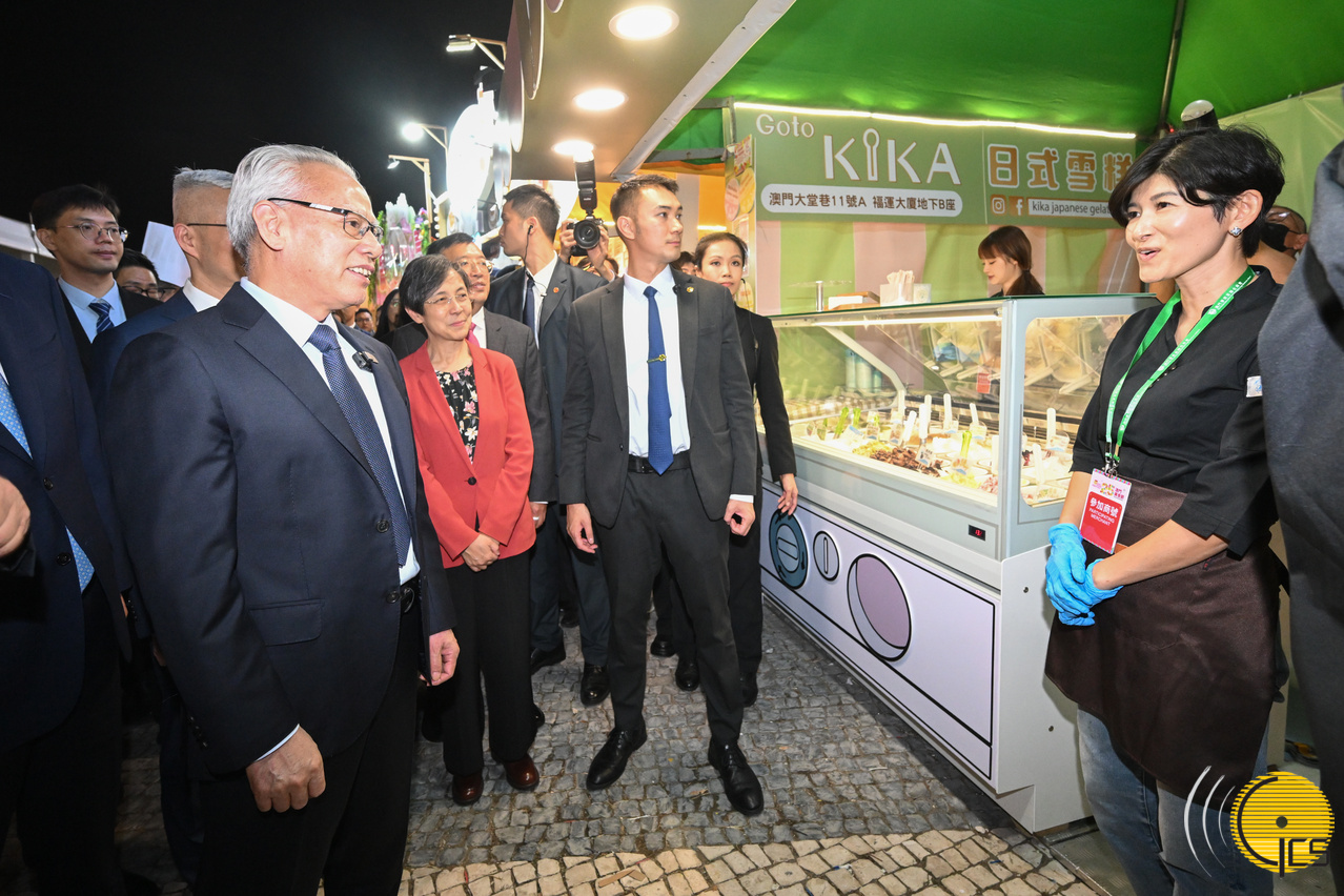 • The Chief Executive, Mr Sam Hou Fai, tours stalls and talks to vendors at the 25th Macao Food Festival.