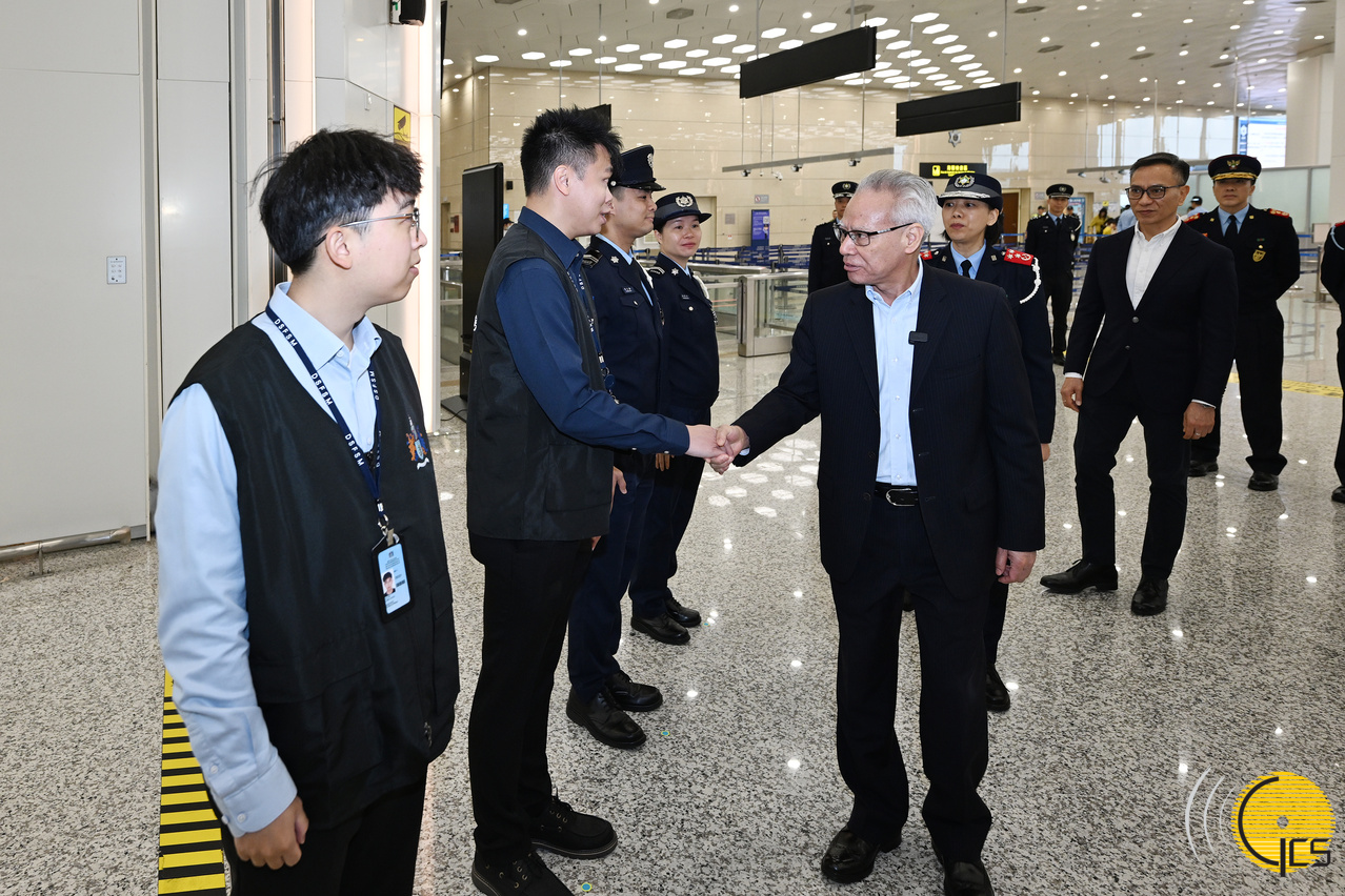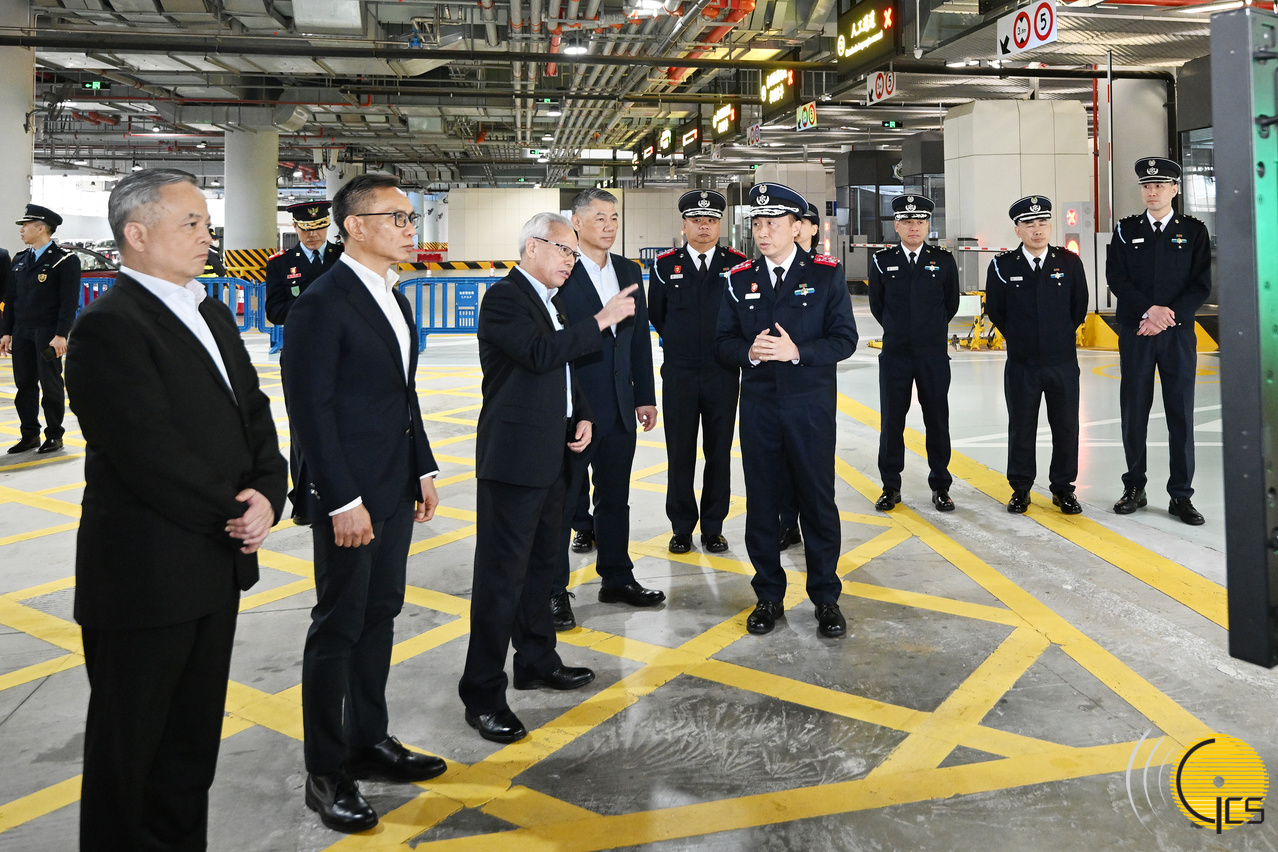• The Chief Executive, Mr Sam Hou Fai, inspects the Hengqin Port to observe the operations of cargo inspection and passenger clearance procedures at the outbound vehicle lanes.