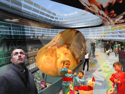 The assessment concentrated on the following keystones: (1) Feasibility: “Lanterna do Coelhinho” was graded the highest in feasibility, by means of building costs, construction technology and construction duration (6 to 9 months) set by the Expo. (2) Extendibility to other related items: Given the construction of Macao Pavilion is only the first step toward Macao’s participation in the World Expo, the entire project also includes related items such as production of internal exposition, entertainment, cultural performance, parades, Online Expo and souvenirs. The extendibility of “Lanterna do Coelhinho” into these related items is large due to its innovative design. The design includes powerful exposition features like a simulated internal exhibition room, a ceiling-screen resting theatre and children sliding. The design is highly aesthetic and practical. (3) Uniqueness and attractiveness: The World Expo will have more than 200 pavilions. While Macao Pavilion will be situated between two rectangular pavilions, “Lanterna do Coelhinho” can easily stand out given its balloon head and tail that can be hoisted and moved with music. Furthermore, the transparent outer wall of the design makes it possible to use lightings and colors to give different aesthetical effects in all angles. (4) Practicality in later implementation. It is of pivotal importance that the concept design can be put into actual construction technically. (5) Environmental concern: Macao Pavilion is a temporary construction, so it is more than necessary to bring in environmental concerns to avoid squandering. “Lanterna do Coelhinho” is powered by solar energy and steel-made. Usage of water is minimized and materials can be recycled.
