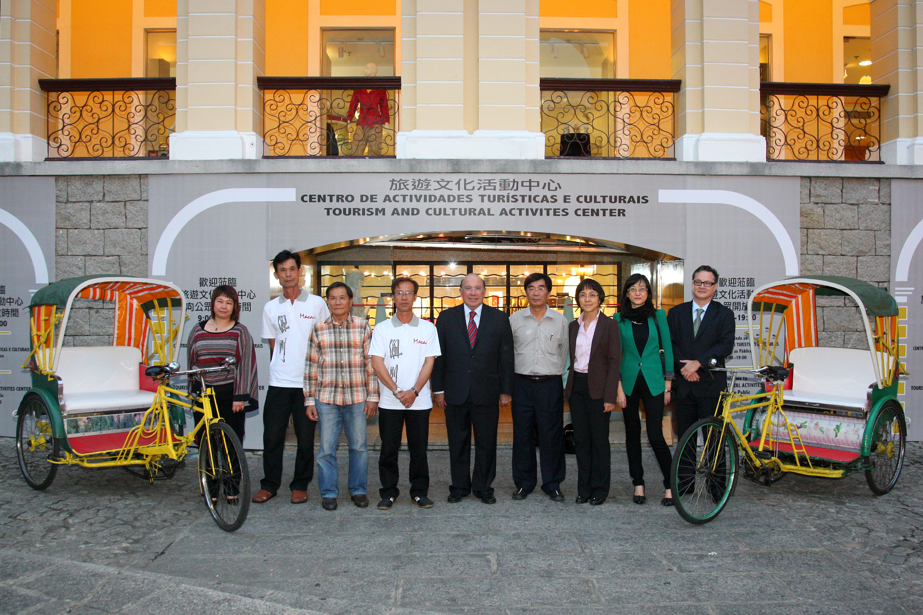 Director of MGTO João Manuel Costa Antunes and Chairman of the Macau Pedicab Drivers Union, Lei Kuok Va signed the agreement at the ceremony which took place at the Tourism and Cultural Activities Center.