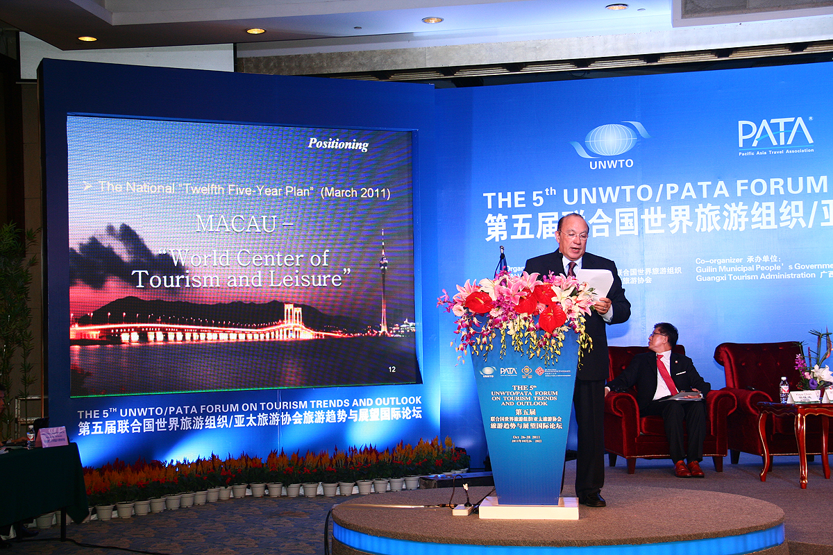 The 5th UNWTO/PATA Forum on Tourism Trends and Outlook, organized by the United Nations World Tourism Organization (UNWTO) and the Pacific Asia Travel Association (PATA), was held in Guilin, China from October 26-28, 2011. Director of Macau Government Tourist Office (MGTO) João Maunel Costa Antunes spoke at the Opening Ceremony of the Forum and delivered closing remarks as the Vice Chairman of PATA.