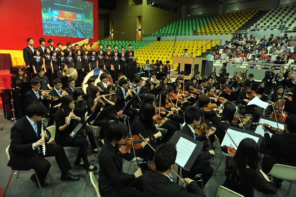 For years, UM staff and students have been longing to have their own university anthem, and this wish finally came true. Last year, which marked the thirtieth anniversary of the university, UM launched a university anthem lyrics material contest, and set up an Organizing Committee chaired by Mr. Lei Pui Lam, first vice chair of UM’s University Council. The Organizing Committee received fifty-two entries by internal and external participants, from which the Evaluation Committee selected nineteen.