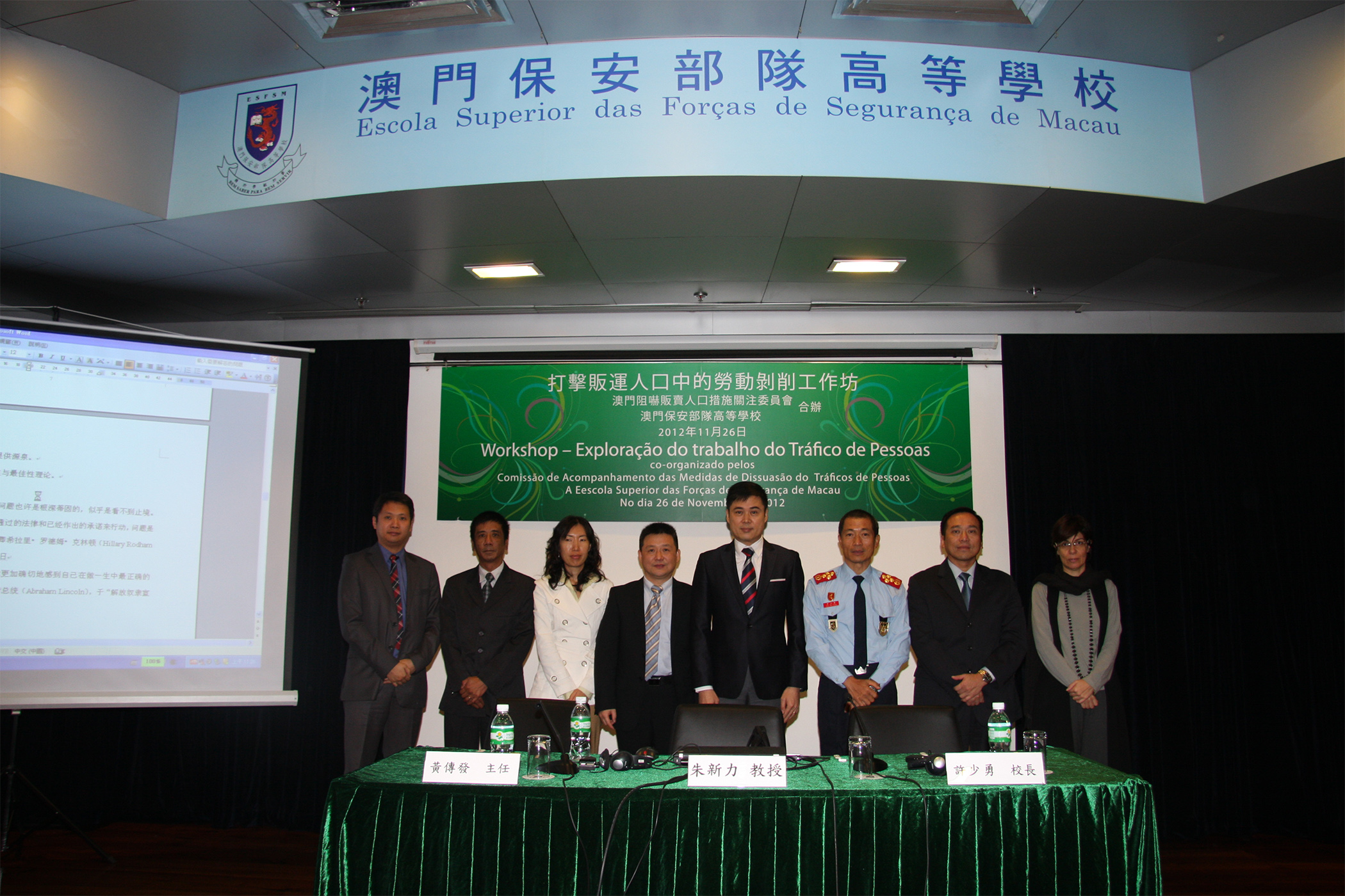 The Human Trafficking Deterrent Measures Concern Committee, in association with the Academy of Public Security Forces (ESFSM), organized the “Combating Human Trafficking – Labour Exploitation” Workshop on November 26 at the hall of ESFSM. Mr. Zhao Guoqiang, Professor of Law, and Professor Zhu Xinli, Executive Dean of Zhejiang University Guanghua Law School were invited to lecture at the workshop attended by trainees from the Labour Affairs Bureau, Macao Customs, Public Security Police, Judiciary Police and the Academy of Public Security Forces. Topics of the Workshop include “Distinguishing the Crime of Labour Exploitation in Human Trafficking” and “Social Regulations on Labour Exploitation in Human Trafficking”. Through this Workshop, participants are given opportunities to learn how to define human trafficking cases and distinguish characteristics between crimes from legal and administrative aspects, as well as the feasible measures adopted to combat the crime.