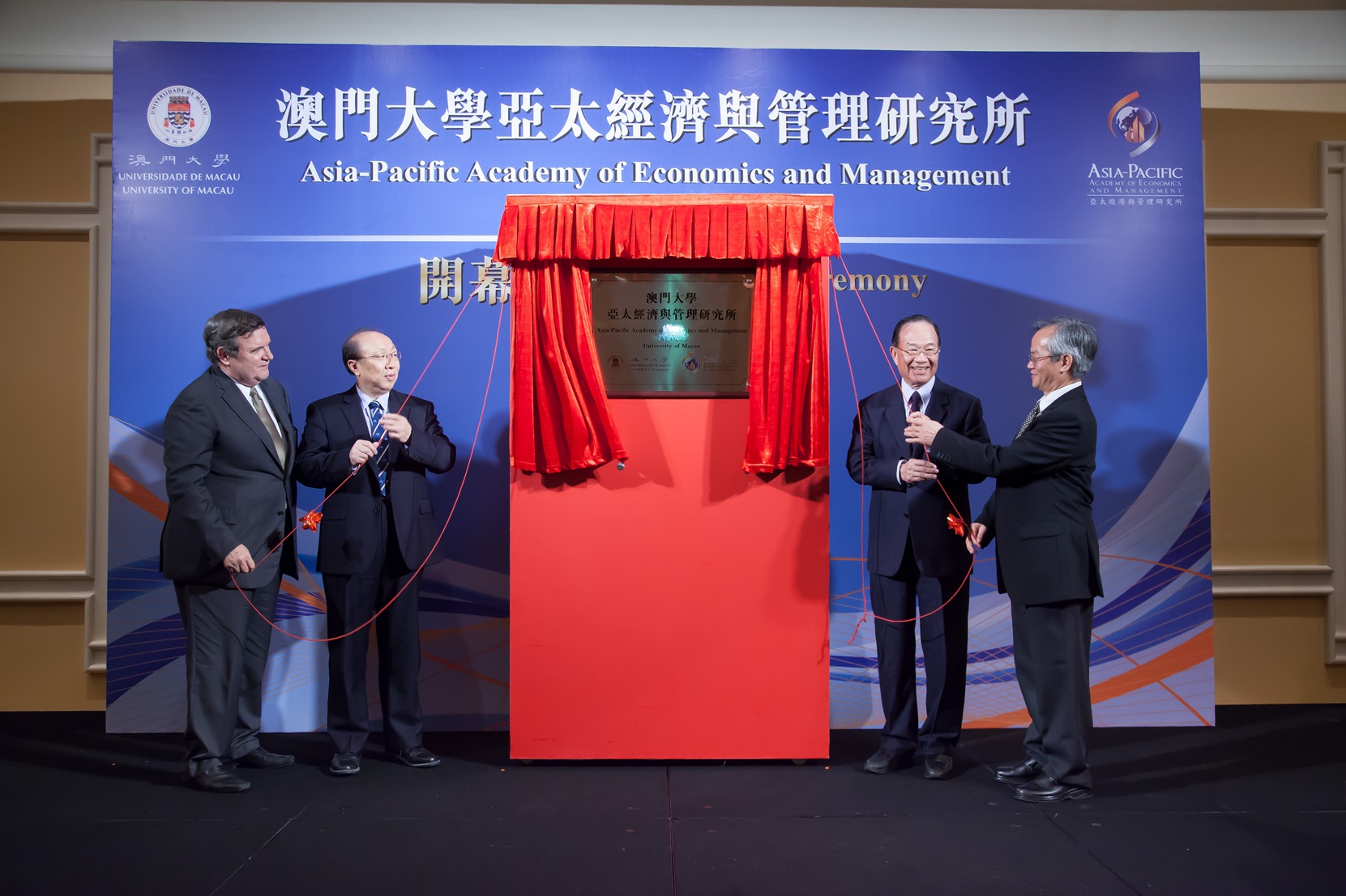 The Opening Ceremony and Gala Dinner for the Asia-Pacific Academy of Economics and Management (APAEM), University of Macau (UM), was held on 17 April, signalling the official start of operation of APAEM. With a strong teaching and advisory team comprised of well-known scholars and business leaders, including three Nobel Prize laureates, APAEM is committed to nurturing more internationally competitive and socially responsible future leaders for Macao and the Asia-Pacific region.