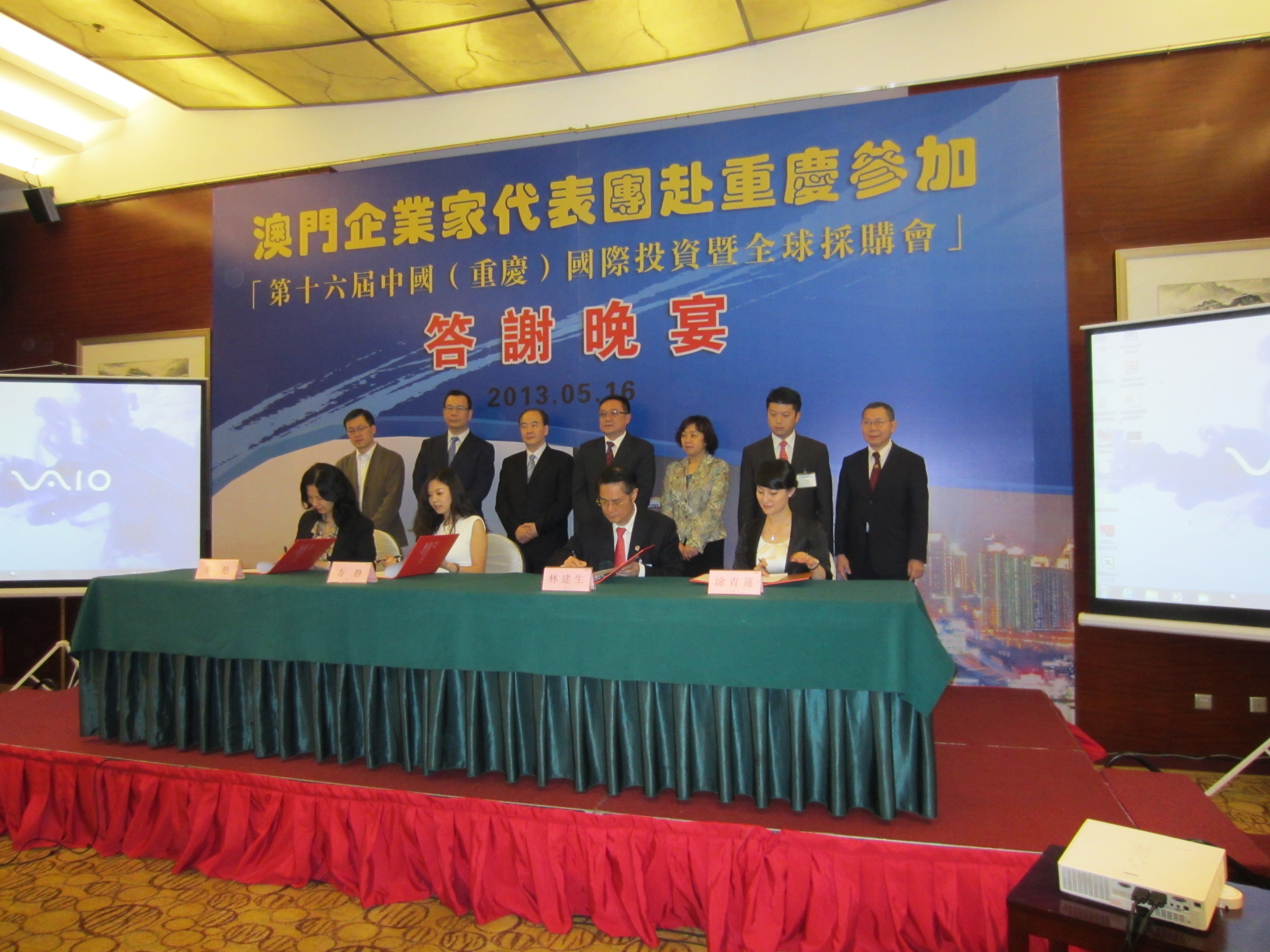 The 16th China (Chongqing) International Investment and Global Sourcing Fair (CCISF) took place from May 16 to 19, 2013 at the Chongqing International Convention and Exhibition Centre. The President of Macao Trade and Investment Promotion Institute (IPIM), Mr. Jackson Chang, led a 40-member Macao Business Delegation to Chongqing from May 14 to 17 to participate in the CCISF and co-preside over the opening ceremony.