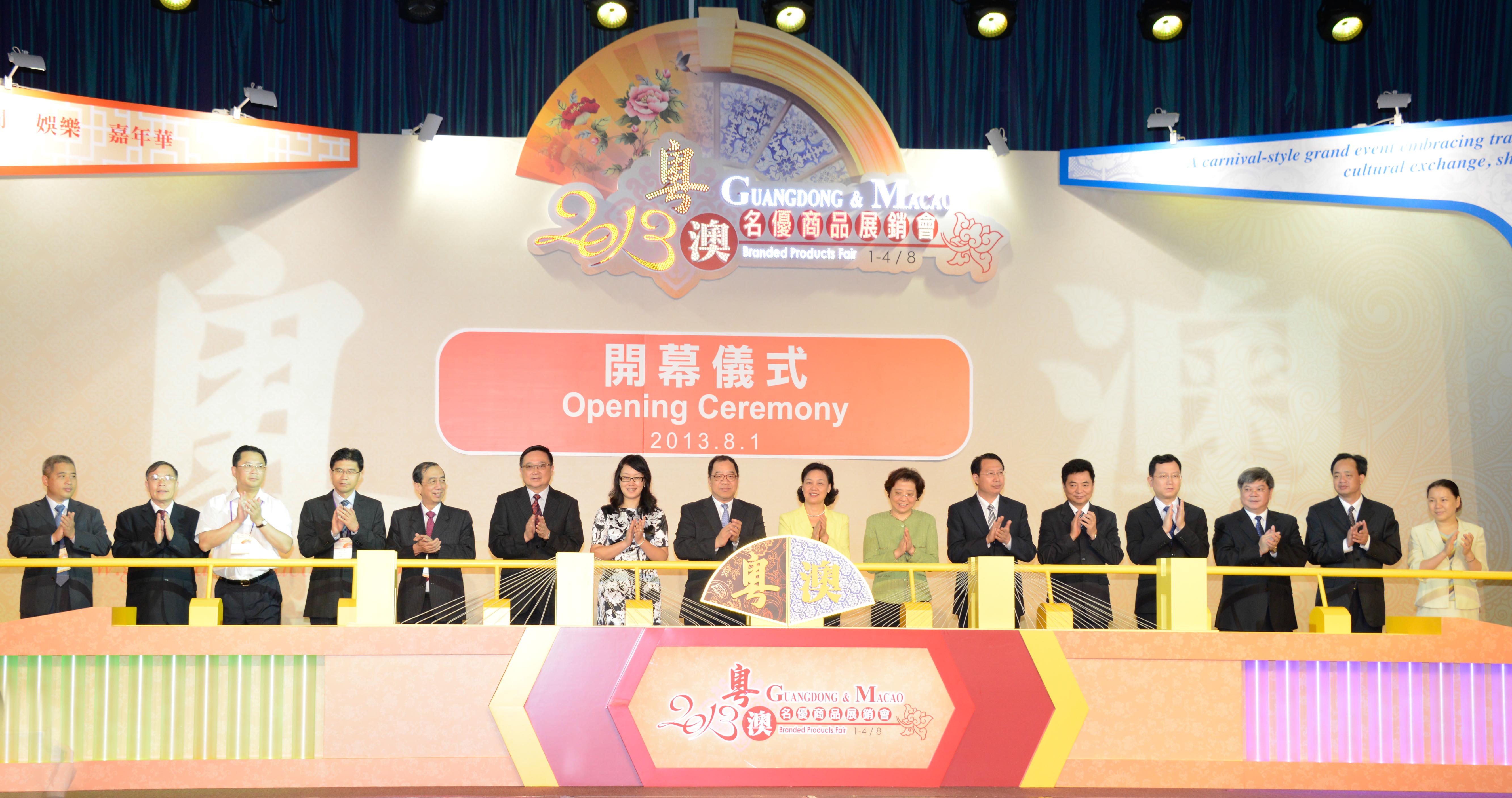 The 2013 Guangdong and Macao Branded Products Fair (GMBPF) was solemnly open today (1st August) at the Macau Fisherman's Wharf and will last for four consecutive days. Over the past year, the co-operation between Guangdong and Macao remained a strong momentum and the import and export volume between Guangdong and Macao and the amount of capital invested of Guangdong recorded positive growth. This fully exemplifies the favourable foundation and prospect for Guangdong and Macao's collaboration. The governments of the two regions also seek to promote the continued and practical growth of their mutual co-operation via this event. On the first day of the event, 9 protocols and 298 business matching sessions were concluded.