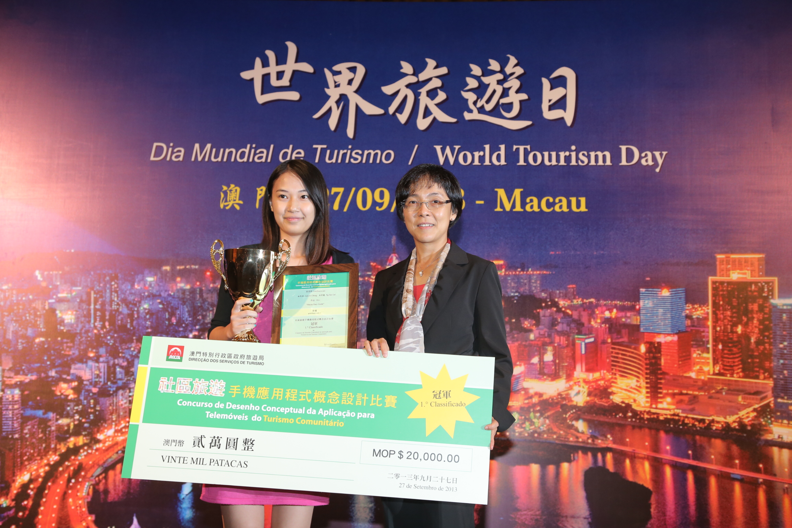 The “Conceptual Design Contest for Community Tourism Mobile App” prize-giving ceremony was held today (September 27) at the banquet dinner for “World Tourism Day”. Macau Government Tourist Office (MGTO) organized this contest to promote the “Development Plan for Community Tourism” and apply more cutting-edge technology in the destination’s promotion.
