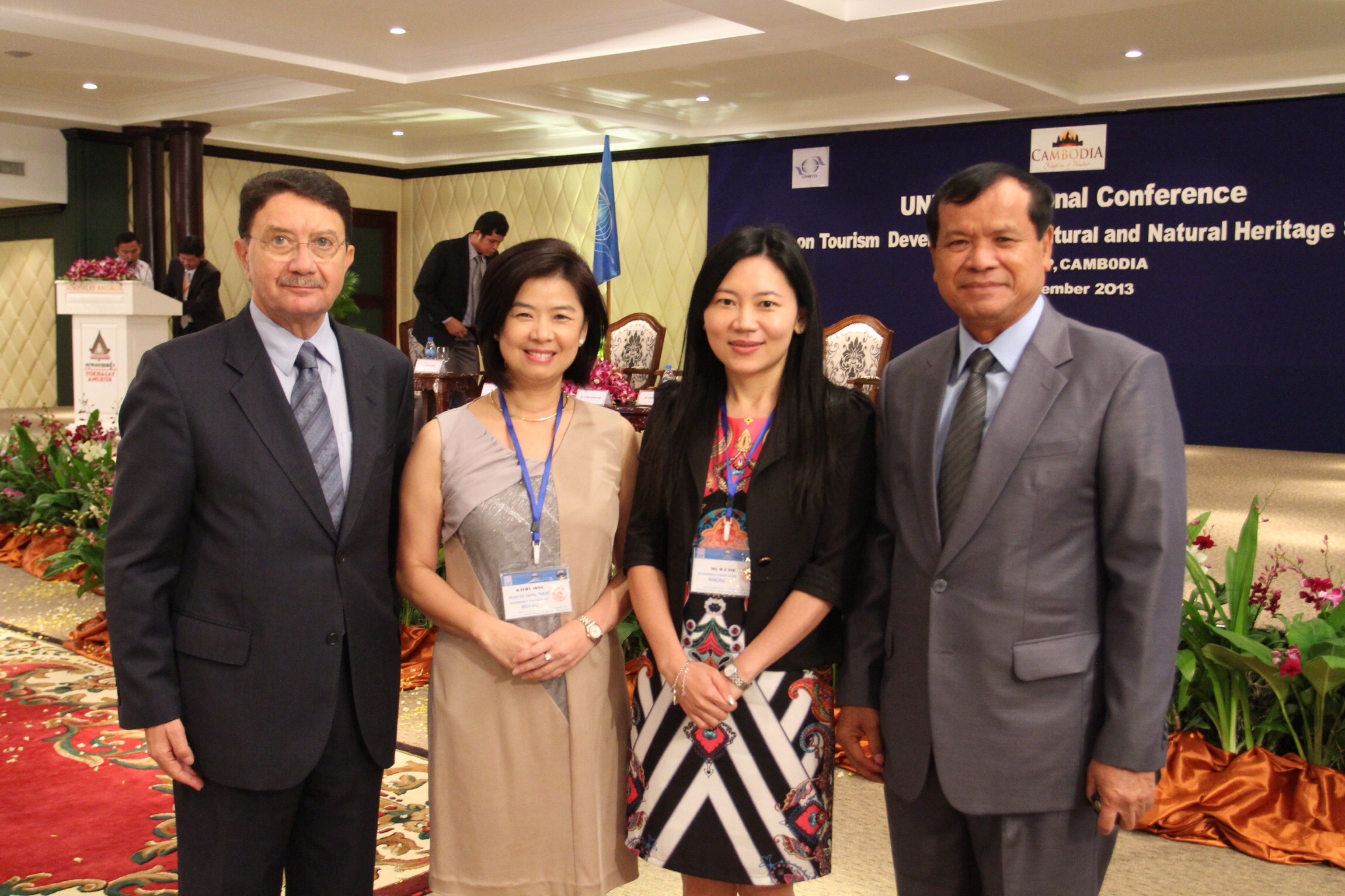 “UNWTO Regional Conference on Tourism Development in Cultural and Natural Heritage Sites” started this morning at the Kingdom of Cambodia’s Siem Reap province, home of World Heritage Site Angkor Wat and several national parks. Participants were welcomed by remarks from the Deputy Prime Minister and Minister in-charge of the Council of Ministers of Cambodia An Sok, UNWTO Secretary-General Taleb Rifai, the Minister of Tourism of Cambodia Thong Khon and the Representative of UNESCO in Cambodia, on behalf of the Director-General of UNESCO, Anne Lemaistre. MGTO Deputy Director Cecilia Tse, joined by MGTO External Relations and Communication Department Head Kathy Iong, are among the delegates to the conference.