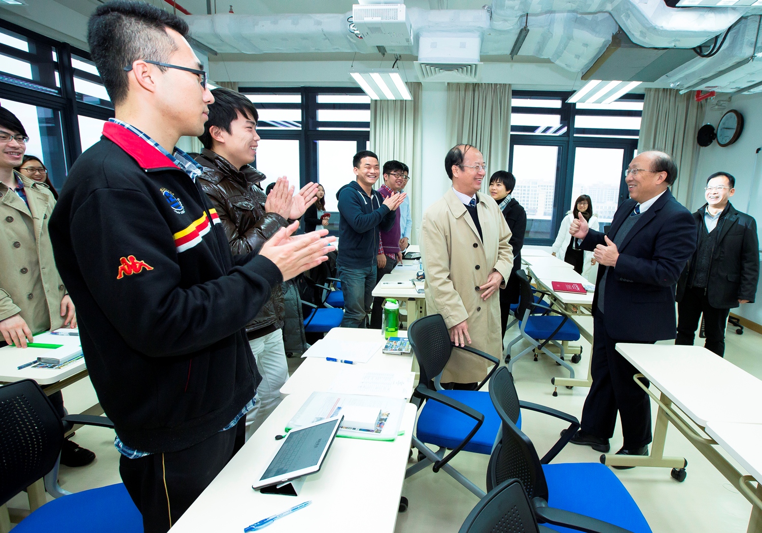 UM Rector Wei Zhao and Vice Rector Simon Ho made a special trip to the new campus to meet with the students. One student was so excited to see the rector that he gave Wei Zhao a big hug. Rector Wei Zhao chatted with the students and noted that it was a momentous day which ushered in a new chapter in the university’s history. He reminded the students attending the law class about the importance of the knowledge of law and encouraged them to study hard so they can contribute to society in the future. Vice Rector Simon Ho encouraged the students to raise suggestions to help build a better campus.