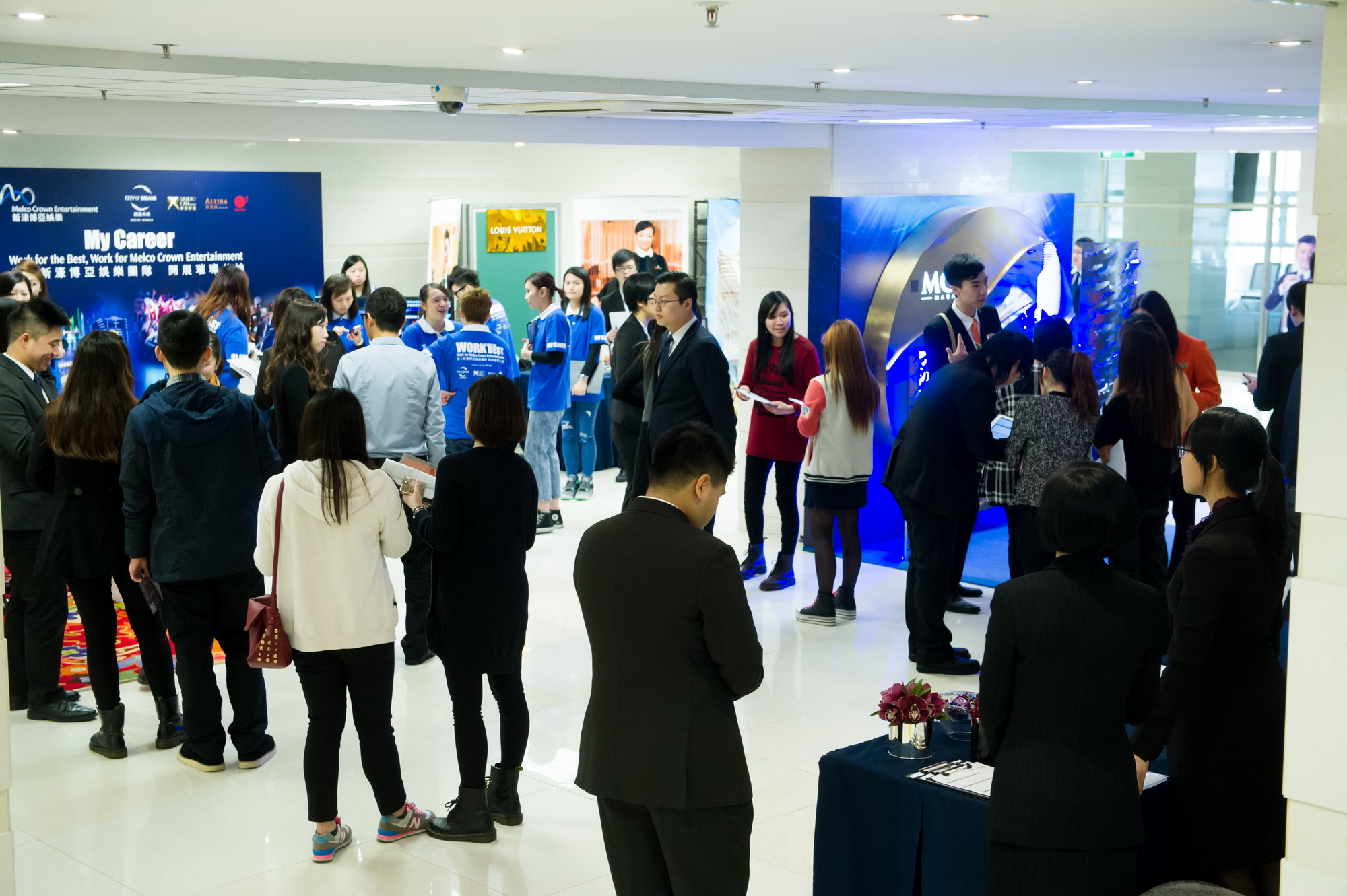 19 organisations with about 1,300 job vacancies from the tourism and services industry joined the event. These included DFS Cotai Limitada, East Asia Airline Limited, EGL Tours (Macau) Company Limited, Four Seasons Hotel Macao Cotai Strip, Galaxy Entertainment Group, Grand Hyatt Macau, L’Arc Macau, Lisboa Hotels Complex Macau, Louis Vuitton Macau Company Limited, Melco Crown Entertainment, MGM MACAU, Menzies Macau Airport Services Limited, New Yaohan, Nuance-Watson (Macau) Limited, Sands China, Sheraton Macao, Shun Tak Holdings (Macau) Limited, Wing On Holidays (Macau) Limited and Wynn Macau.