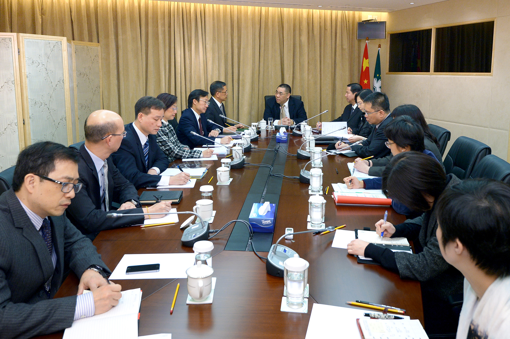 The meeting was held at the Government Headquarters where Mr Chui told all participating departments to make good evaluations and preparations on security, meeting arrangements, finance, human resources, venues, protocol and promotion.