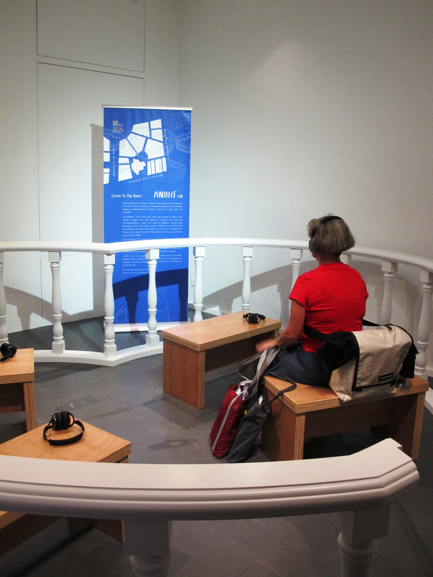 The Macao Pavilion comprises four parts: ‘Low Stool? Yes, More!’; ‘From Below to Above’; ‘Listen to the Heart’ and ‘The Added Layer.’ These represent, respectively, the low seats in coffee stalls, the assorted decorative and floral patterns in temples and churches, the sounds of different Macao festivals and ambiences, and architectural elements featured in the external walls of old buildings, immersed in Macao characteristics which reveal the unique cultural heritage of the territory, its architectural features and traces of the citizens’ quotidian.