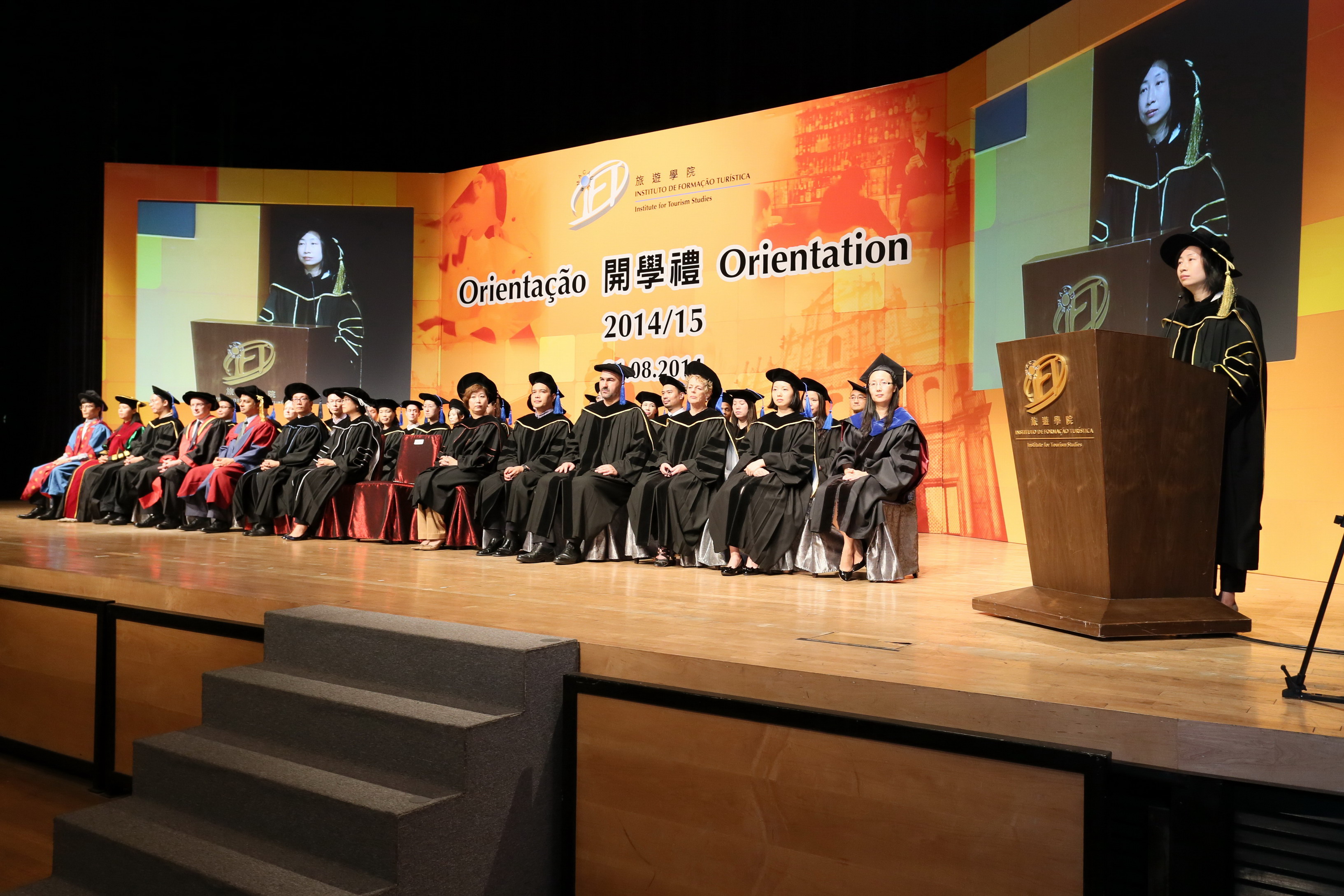 President of IFT, Dr. Fanny Vong presented her warmest welcome to the new comers during the ceremony. Dr. Vong expressed that the 416 new students should be well equipped in these 4 years of study and be ready for the tourism development of Macao and opportunities in the years ahead.