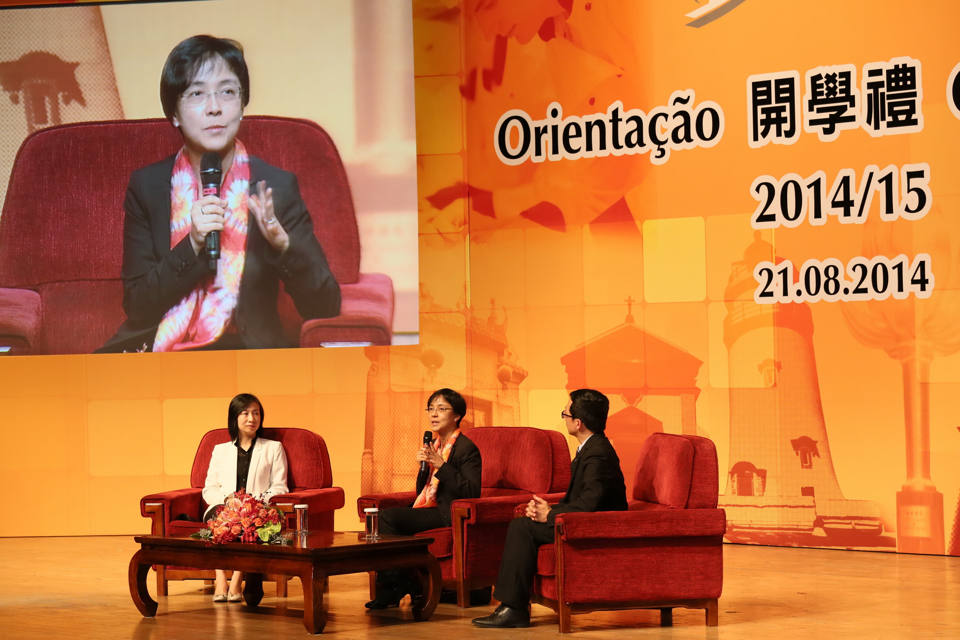 The new academic year 2015/16 began with a warm welcome of 416 students joining the IFT family. To mark the commencement of this school year and to gain a better understanding of the tourism industry, the Institute has the honour to invite Ms. Helena Fernandes, Director of Macau Government Tourist Office (MGTO), who was joined by IFT’s President and Head of Technical and Academic Support Division, to host a sharing session to share their experiences and insightful perspectives on Macao’s tourism development with the new students.
