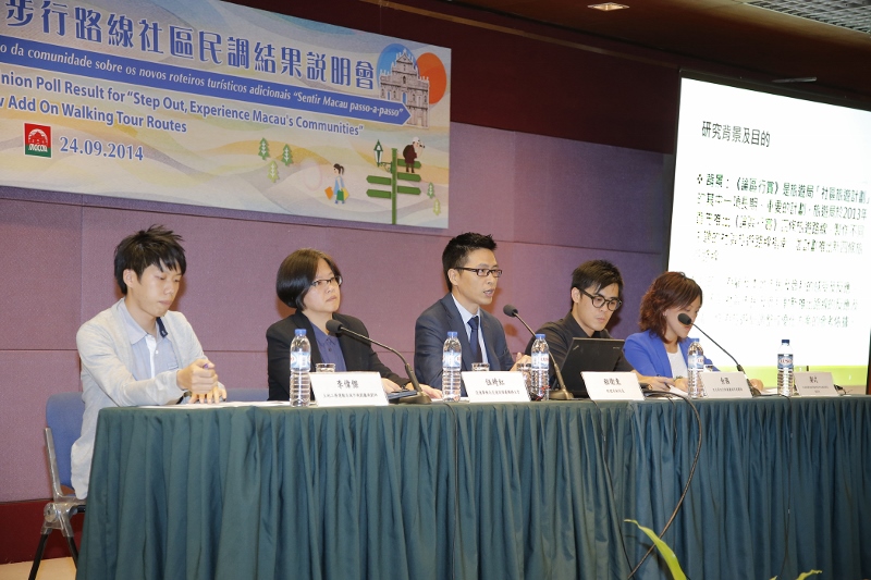 MGTO held a Briefing Session on the Community Opinion Poll Result for “Step Out, Experience Macau's Communities” New Add-On Walking Tour Routes today (24 September). MGTO Deputy Director Cheng Wai Tong attended the session together with the representatives of Civic and Municipal Affairs Bureau; Cultural Affairs Bureau; Transport Bureau as well as Land, Public Works and Transport Bureau. During the session, Deputy Director Cheng presented the result of the poll.