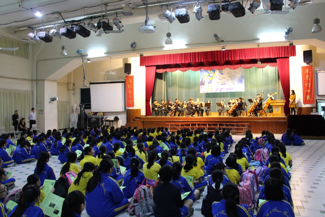 The Macao Orchestra visited the Our Lady of Fatima Girls’ School, Pui Ching Middle School, Santa Rosa de Lima English Secondary School (Chinese Section) and the Taipa Luso-Chinese School, in a concert tour entitled “Music in the Campus”. A string ensemble from the orchestra performed dance music in various styles combined with interactive activities, and both teachers and students enjoyed the music and participated enthusiastically in the activities.