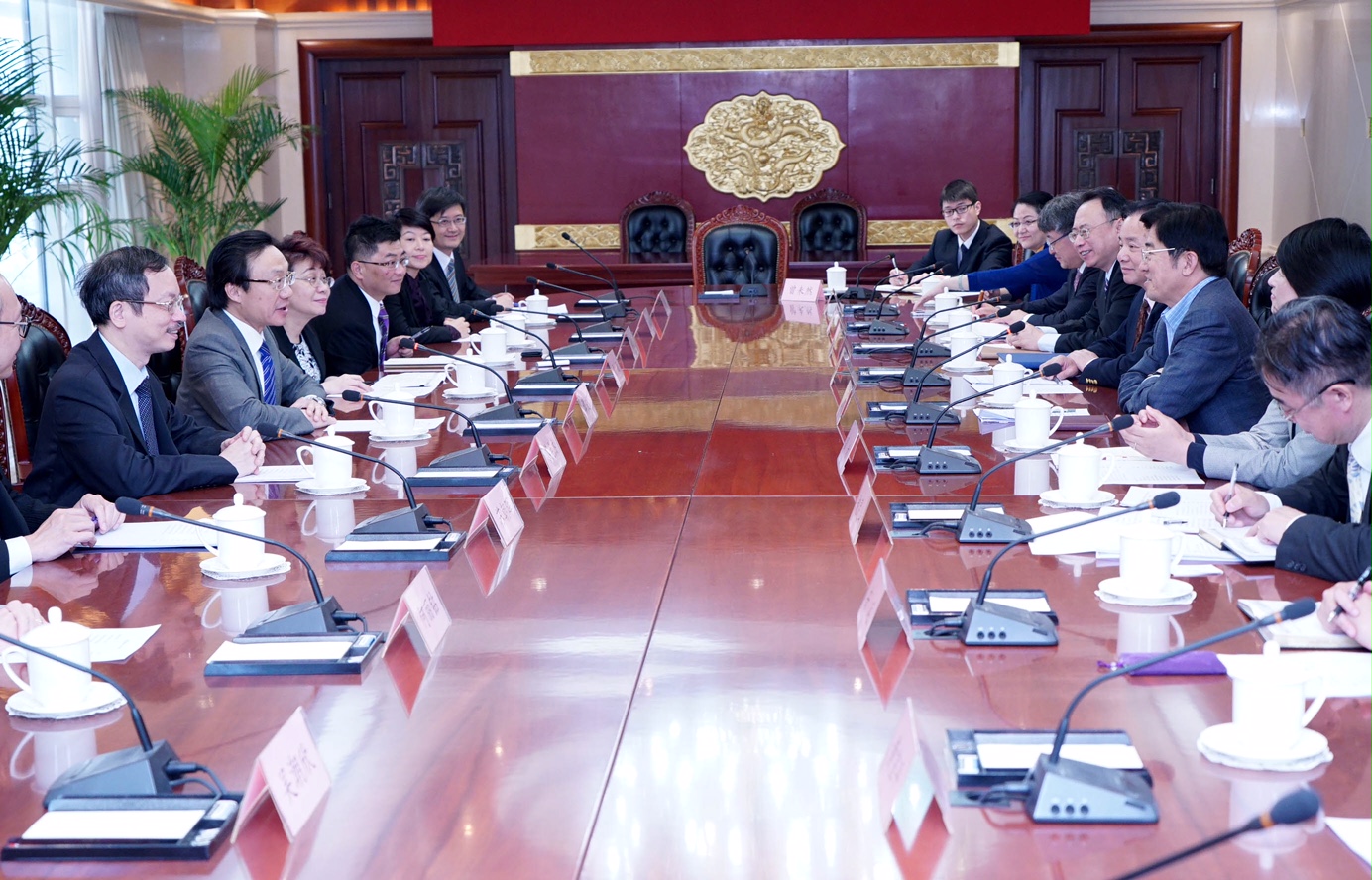 The Government would take advantages of the “Belt and Road” to further promote complementary co-operations in culture and tourism with the mainland, said the Secretary for Social Affairs and Culture, Mr Tam Chon Weng. Speaking to the Vice Chairman of the China National Tourism Administration, Mr Li Shihong, in Beijing on 21 April, Mr Tam said the Government would give full play on the Silk Road Economic Belt and the 21st Century Maritime Silk Road (“Belt and Road”), the framework laid down by President Xi Jinping, to further integrate into the global economy. In tourism, the Government put forward earlier optimisation measure on the facilitated individual travel scheme, with the aim to provide a better environment to visitors and maintain the people’s living quality. Mr Li briefed Mr Tam on the country’s tourism measures “515 Strategy”, namely to boost tourism development that focuses on “civilization, orderliness, security, convenience and prosperity”, which would bring more development opportunities to Macao. In today’s meeting with the Deputy Director of the Hong Kong and Macao Affairs Office of the State Council Mr Zhou Bo, Mr Tam expressed his appreciation for the Office’s long-term support on Macao’s social issues and the people’s livelihood. Mr Zhou spoke highly of the government’s people-oriented policies, saying there was more room for co-operation besides economic issues, such as education, culture, tourism, sports and social welfare. During the visit to the capital beginning 21 April, the delegation led by Mr Tam also visited the Ministry of Culture, the Ministry of Education, the State General Administration of Sports, the State Administration of Cultural Heritage, the State Administration of Traditional Chinese Medicine, and the National Health and Family Planning Commission. In meeting the Vice Minister of Culture, Mr Ding Wei, Mr Tam introduced the Government’s plan on furthering co-operation with the mainland in cultural exchanges, creative industry, personnel training, and the promotion of tangible and intangible cultural heritages. Mr Ding said he foresaw more participation of Macao in the country’s annual cultural promotion campaign across the world. To celebrate the tenth anniversary of the Historic Centre of Macao, which was accredited by the United Nations of Education, Scientific and Cultural Organization (UNESCO) in 2005, Mr Tam said the Government would step up the promotion on cultural heritage, fortifying more co-ordination from industries such as culture, education and tourism. The State Administration of Traditional Chinese Medicine and the National Health and Family Planning Commission had rendered their full support to the city’s medical development, especially the Islands District Medical Complex and a joint project on traditional Chinese medicine with the World Health Organization. On the following day, representatives of Ministry of Education and the State General Administration of Sports and Mr Tam explored closer co-operation in personnel training and the establishment of an information exchange mechanism. Members of the delegation included Director of Macau Government Tourist Office, Ms Maria Helena de Senna Fernandes; the President of Cultural Affairs Bureau, Mr Ung Vai Meng; and the Director of Education and Youth Affairs Bureau, Ms Leong Lai.
