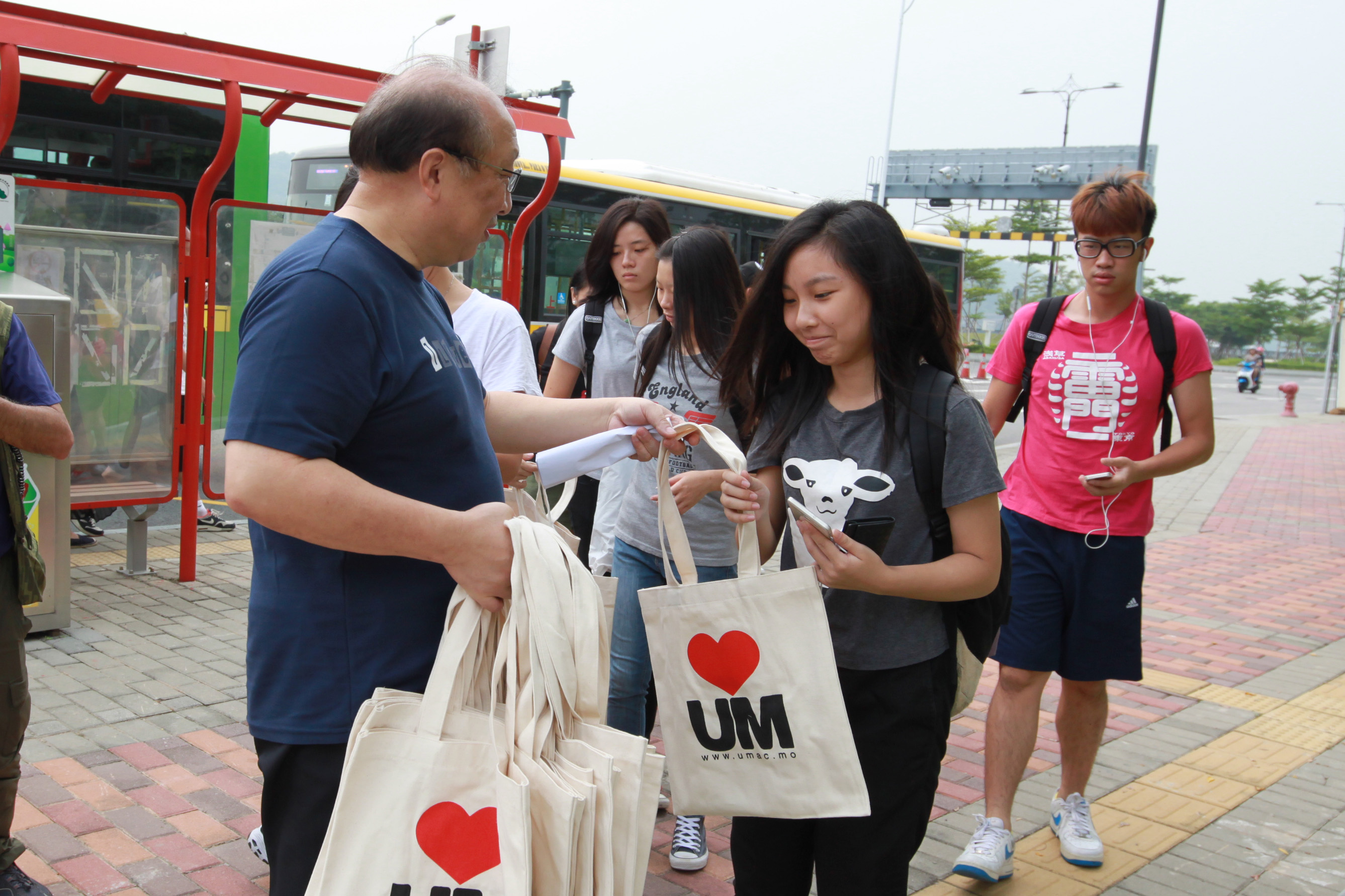 Many students started to queue up for buses to the campus at the Praça de Ferreira do Amaral bus stop around 8:00am this morning. Rector Zhao and Dean of Students Peter Yu visited the bus stop and wished students luck on the first day of school. The Transport Bureau increased bus service frequency during rush hours to provide maximum convenience for UM students. UM also arranged for some shuttle buses to take students to the campus.