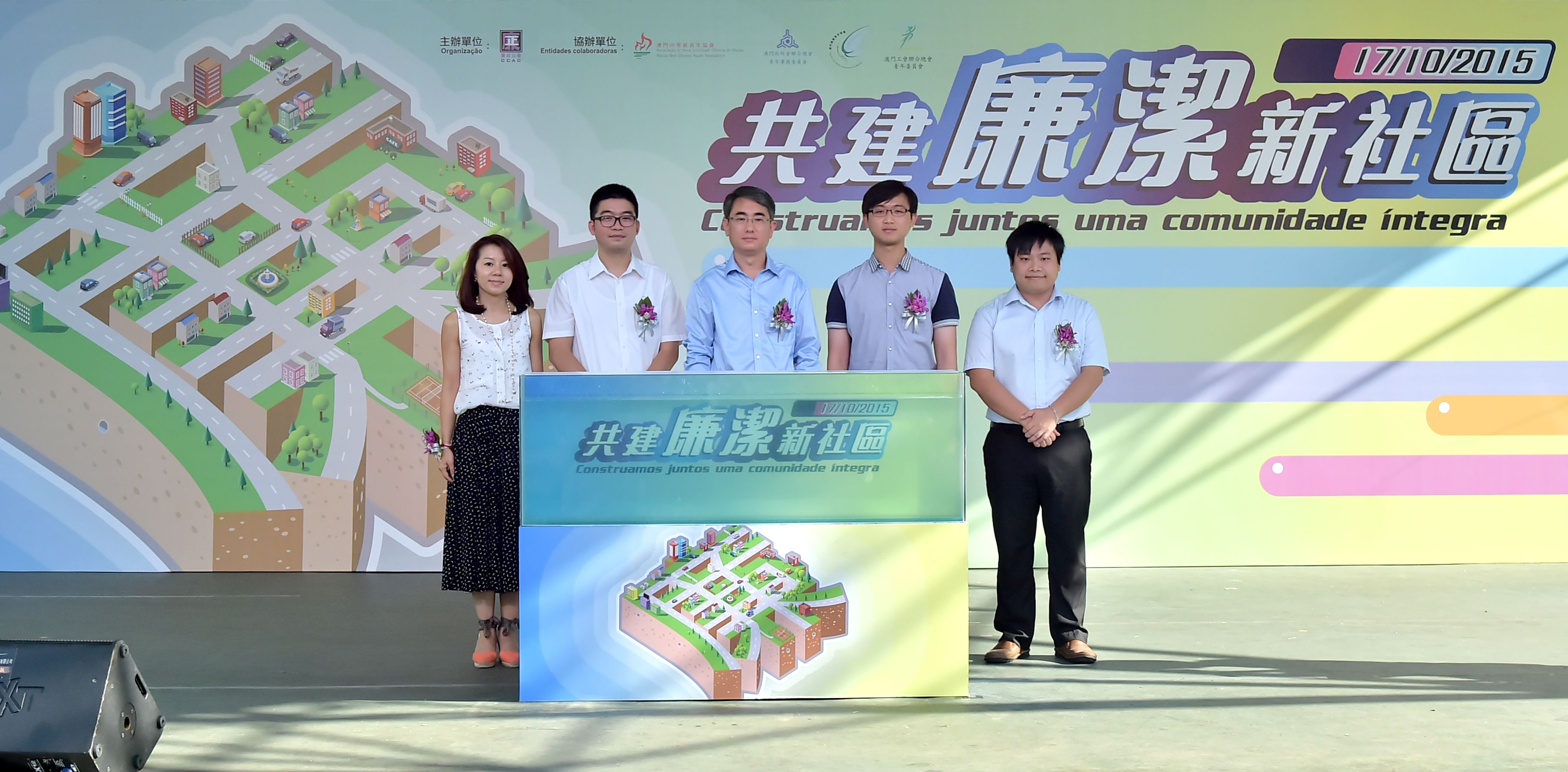 The CCAC held an event entitled “Build a New and Clean Community” at the park of Iao Hon Market in this afternoon (17th October). In his opening speech, the Commissioner Against Corruption, Cheong Weng Chon, stated that the CCAC has seen certain achievements resulting from its efforts in graft fighting over the years, which have gained many citizens’ support. At the same time, it also enables more citizens to understand the hazardous impact of corruption and that integrity, justice and rule of law are the cornerstones of robust development of society. The CCAC will continue to strengthen every kind of media publicity in order to perfect its interaction with citizens and join hands with them to build an unbreakable anti-corruption network. Moreover, Cheong added that the CCAC will put more efforts in promotion targeting teenagers so as to promote the values of integrity, honesty, justice and fairness among them.