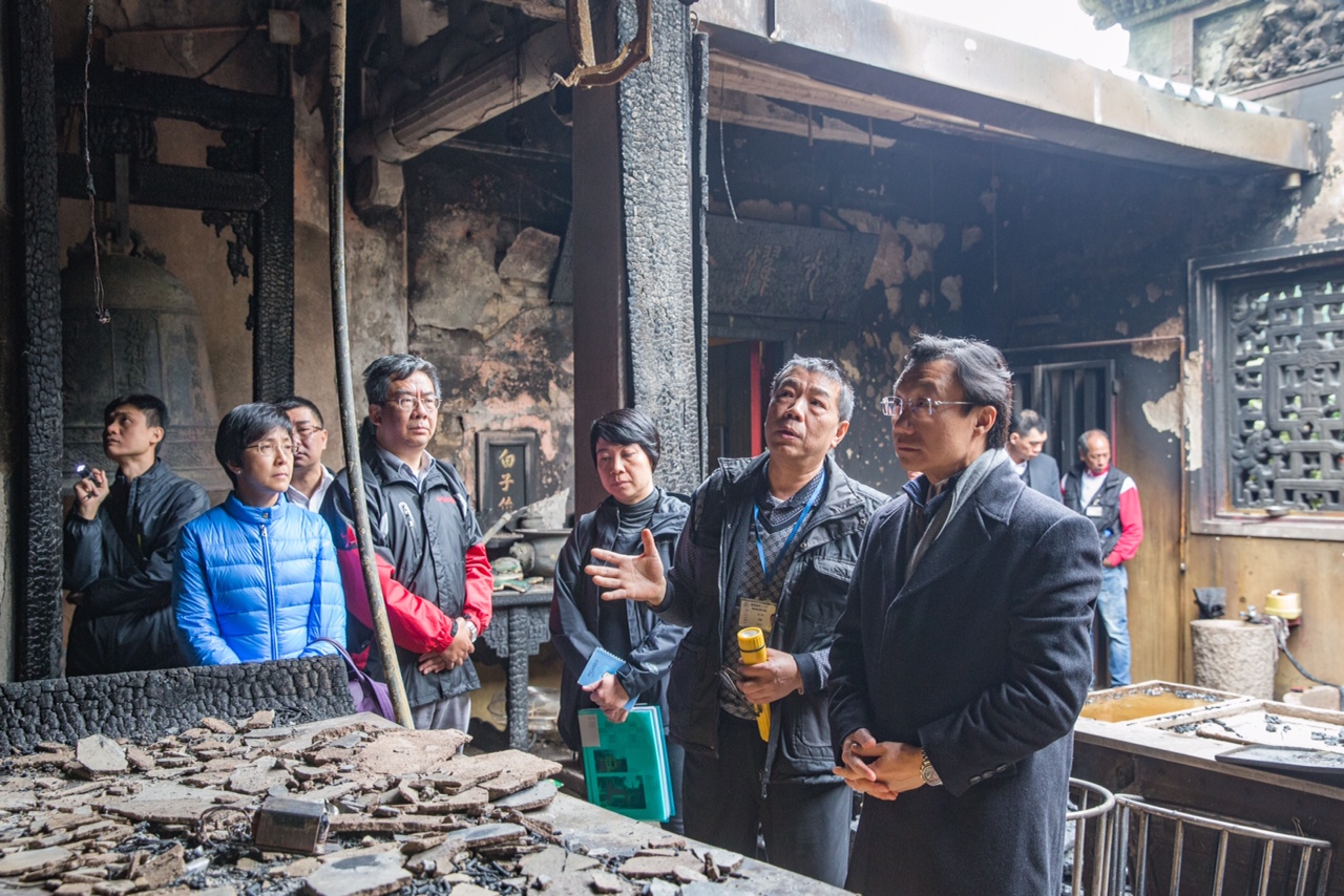 It was distressing to learn that a temple altar and some wall plaques in a pavilion of A-Ma Temple were damaged as a result of the fire, Mr Tam told reporters after a tour of the site on Wednesday (10 February).