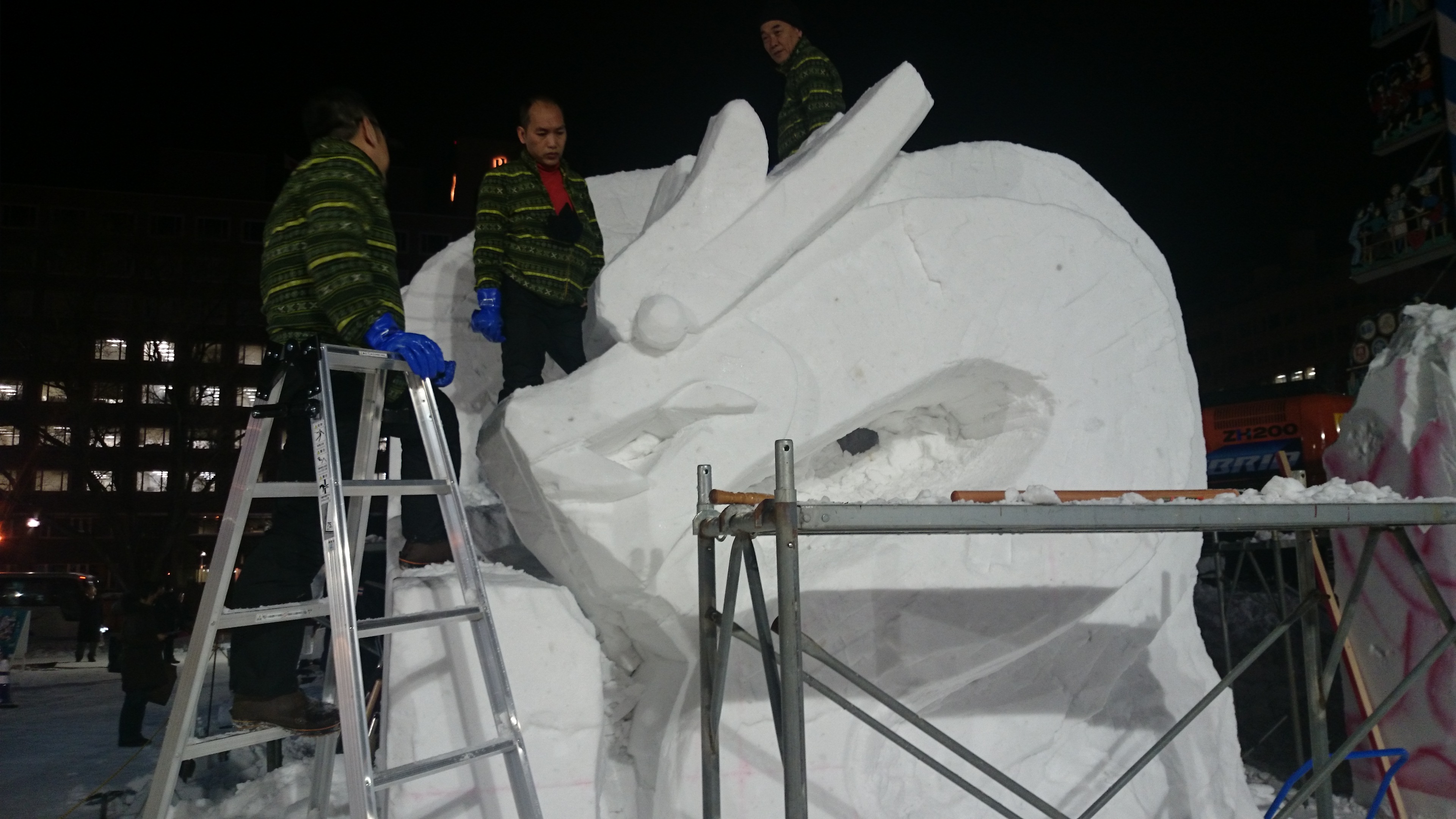 As one of the highlights in the Sapporo Snow Festival, the 43rd International Snow Sculpture Contest featured twelve teams from different countries and regions including Australia, Finland, Hawaii, Latvia, Malaysia and Macao, etc. The teams were required to carve their snow sculpture openly at 11 chome on Odori Site from 4 to 7 February. Winners were announced on the site on 8 February.