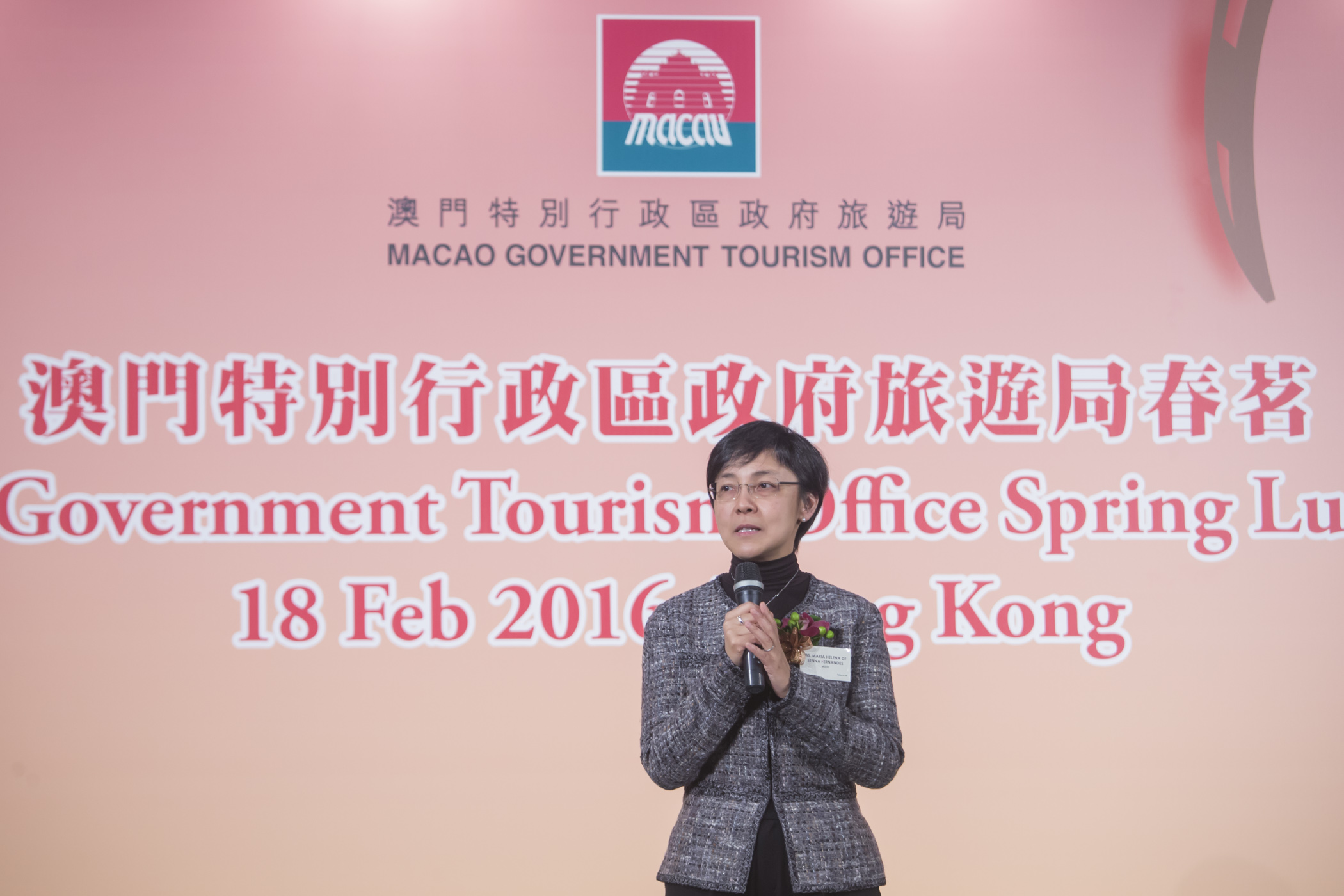 Macao Government Tourism Office (MGTO) hosted a spring luncheon in Hong Kong today (18 February) to thank Hong Kong’s travel trade and incentive partners for their support to the tourism development of Macao over the years, and also to strengthen its cooperation with travel trade in promoting Macao. MGTO Director Maria Helena de Senna Fernandes led a delegation, among which includes MGTO Deputy Director Cecilia Tse, from Macao to greet more than 150 travel trade executives at the luncheon. Commissioner for Tourism of Tourism Commission, Commerce and Economic Development Bureau of the Government of the Hong Kong Special Administrative Region, Cathy Chu; Executive Director of Hong Kong Tourism Board, Anthony Lau; Deputy Chairman of Travel Industry Council of Hong Kong, Gianna Hsu as well as Director of Asia Tourism Exchange Center Ltd., Li Jian Ping, were present in the luncheon among others.