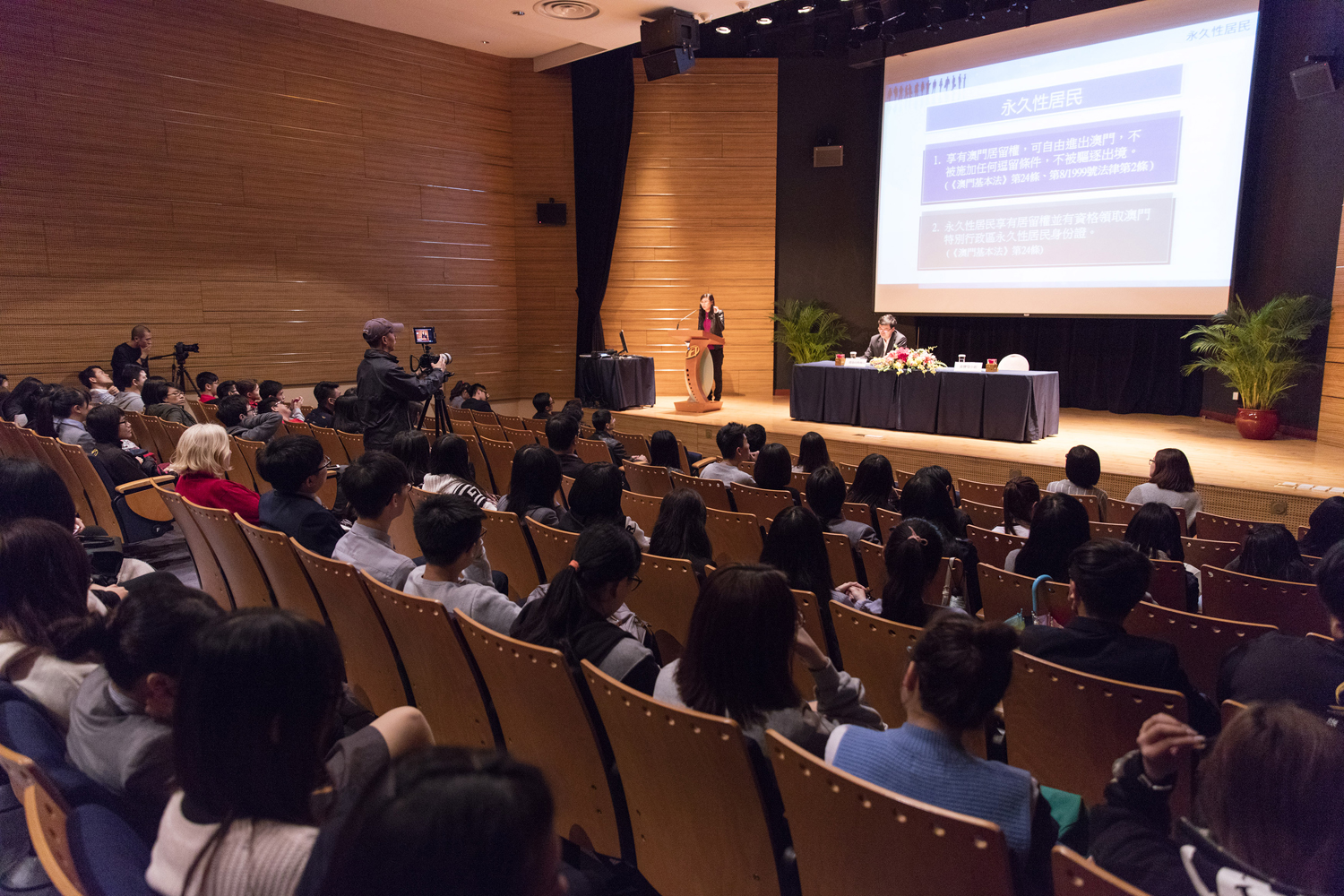 In order to enrich the knowledge of Macao university students on the fundamental rights and duties of Macao residents, the Nationality Law and consular protection and consular services under the framework of the Constitution and the Basic Law, the Office of the Commissioner of the Ministry of Foreign Affairs of People’s Republic of China in the Macao SAR (hereinafter called Office of the Commissioner of MFA), the Identification Services Bureau (hereinafter called DSI), the Legal Affairs Bureau (hereinafter called DSAJ) and the Macao Institute for Tourism Studies (hereinafter called IFT) jointly held a seminar on “Constitution and Basic Law – Fundamental Rights and Duties of Macao Residents, Nationality Law, Consular Protection and Consular Services”, which is part of the thematic seminar series for higher education institutions.