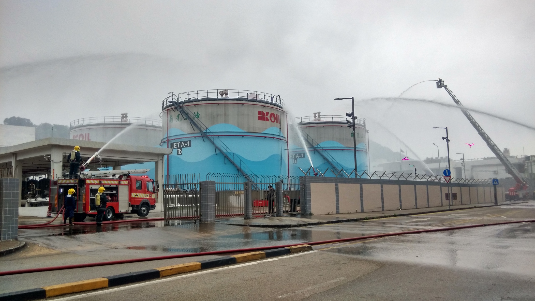 A fuel farm exercise was carried out this afternoon (07 April 2016) at Macau International Airport, simulating a fire in the farm to test and assess the capacity of the government entities and the operators in handling a fuel farm emergency when a case arises. All entities involved cooperated closely with each other in resolving the crisis. The exercise was deemed smooth.