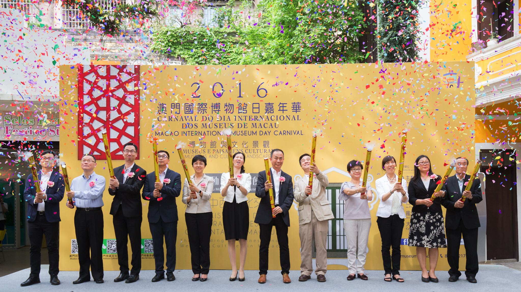 In order to mark this year’s International Museum Day, the “2016 Macao International Museum Day Carnival”, co-organized by eighteen Macao museums, was inaugurated on Sunday, 8 May, at 3pm at the Albergue SCM. The Carnival’s opening ceremony was officiated by the President of the Cultural Affairs Bureau, Ung Vai Meng; the Deputy Director of the Guangdong Museum, Liu Li Tuan; the Assistant Director of the Leisure and Cultural Services Department of the Hong Kong S.A.R. Government, Chan Shing Wai; the Director of the Macao Government Tourism Office, Maria Helena de Senna Fernandes; the Director of Macao Post, Lau Wai Meng; the Deputy Commissioner of the Fire Services Bureau, Chao Ka Cheong; the Director of the Maritime Museum, Chan I Un; the Curator of the Macao Science Center, Sio Hon Pan; the Head of the Division of Nature Conservation and Studies of the Civic and Municipal Affairs Bureau, Fanny Chen; the Vice-President of the Tung Sin Tong Charitable Society, José Chui Sai Peng; the President of the Association of Piety and Charity of the Lin Fong Temple, Kong Su Kan and the Secretary of Dr. Sun Yat Sen Memorial House in Macau, Lin Chia-Che, among others. Representatives of cultural entities from Guangdong Province and the Hong Kong Home Affairs Bureau and its respective museums were also invited. The Carnival is oriented to three main concepts, namely “penetrating to communities, open areas and local issues”, featuring the theme “Mobile Museum – The Blending of Chinese and Western Cultures in Macao”, gathering a rich variety of activities, including thematic exhibitions, seminars, workshops and guided tours.