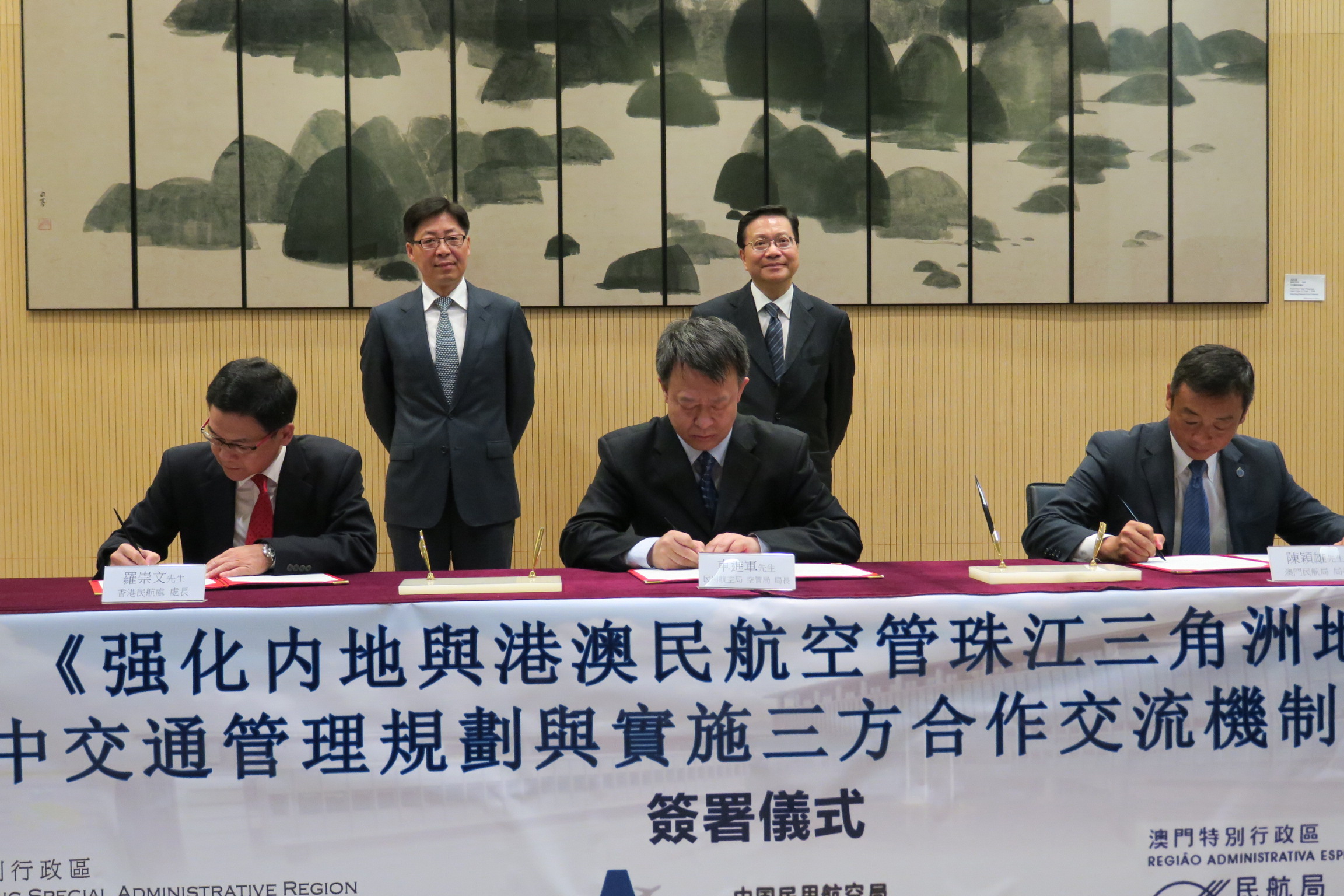 The aeronautical authorities between mainland China, Hong Kong SAR and Macao SAR have been holding regular meetings to discuss the long term development of the air traffic management in the Region since 2004. The “Pearl River Delta Region Air Traffic Management Planning and Implementation” was formulated with the aim of gradually establishing a rational air space structure, with facilities that are guaranteed to be sufficient, and in the operation mode that can be carried out smoothly, for the air traffic management system in this Region. In March this year, the three parties agreed in the supervisory working group meeting to sign the aforementioned cooperation agreement with the aim of enhancing their collaboration to better coordinate among themselves in order that the airports in the Region can develop in an orderly manner in accordance with their own positioning, in other words, progressing their development together to achieve a win-win situation.