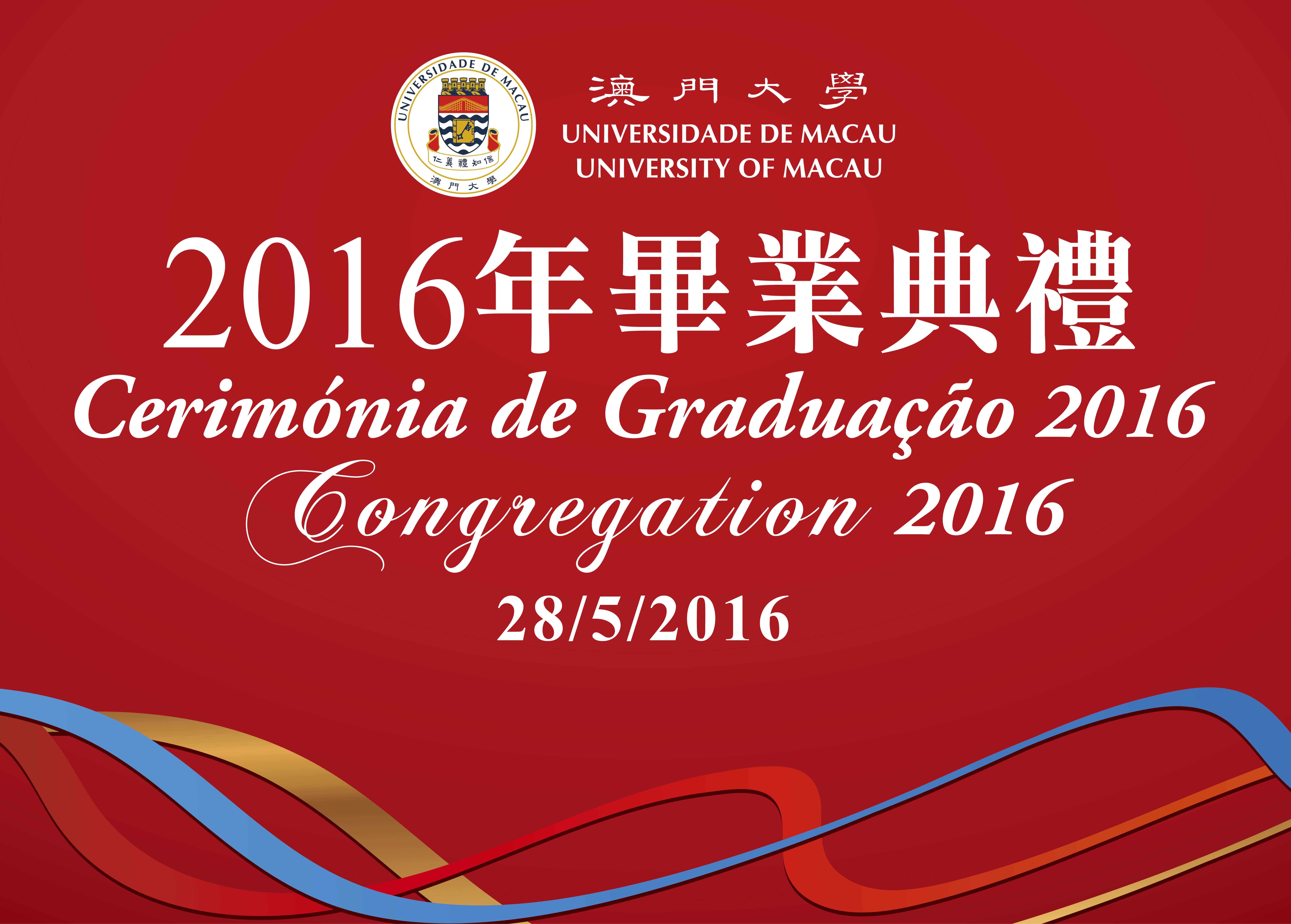 The University of Macau (UM) will hold the Congregation 2016 in its Sports Complex on Saturday 28 May at 4:00pm. Bachelor’s degrees will be presented to Class of 2016 graduates at the event. Chui Sai On, chief executive of the Macao SAR, will officiate at the ceremony.
