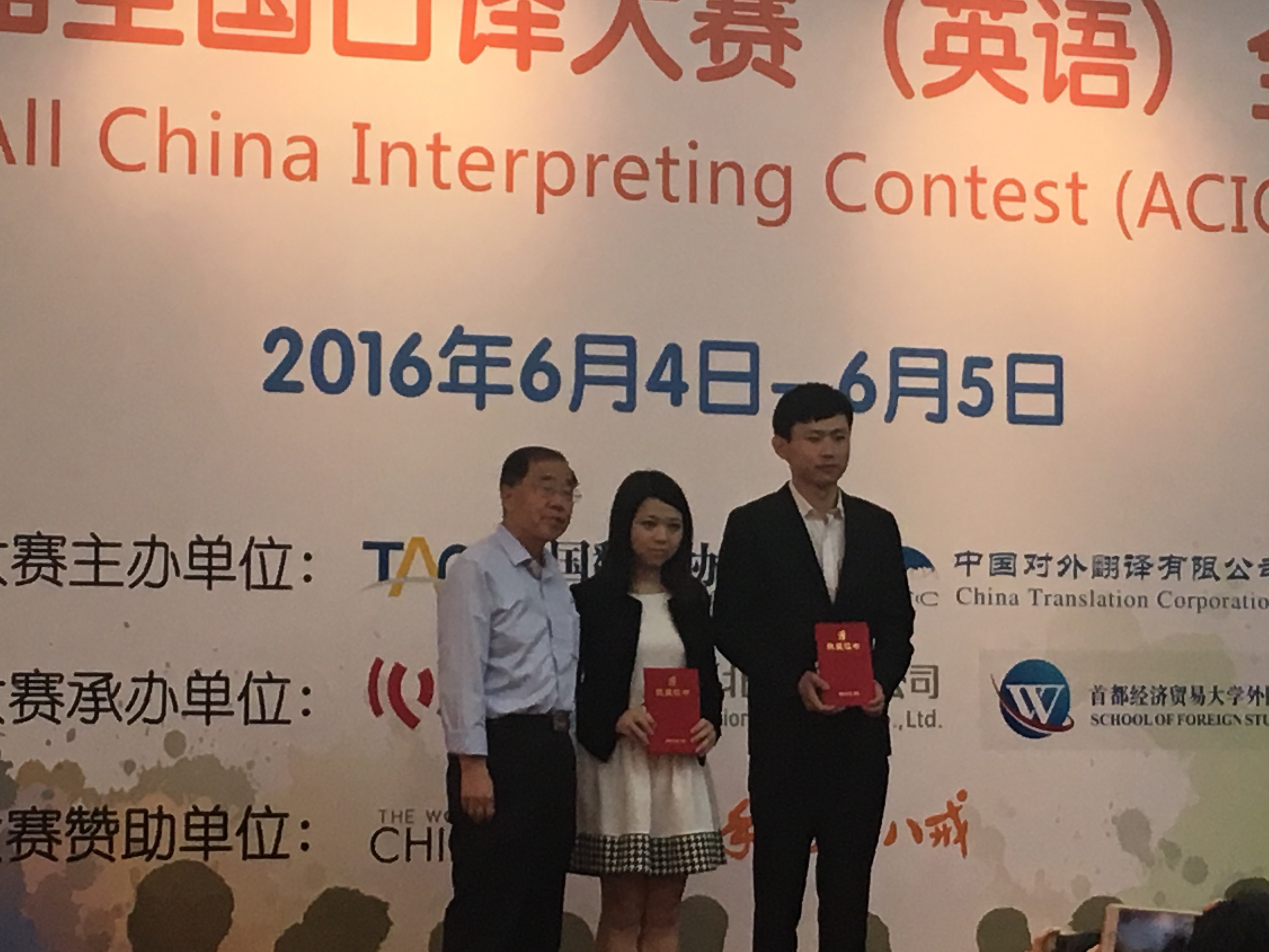 Organised by the Translators Association of China, the All China Interpreting Contest is considered the most prestigious, influential, and industry-known interpreting competition in China. This year, a total of 1,814 contestants from 439 universities in China participated in the competition. The qualifying rounds started in December last year to select outstanding interpreters in eight regions of China. The national final was held at the Capital University of Economics and Business in Beijing.