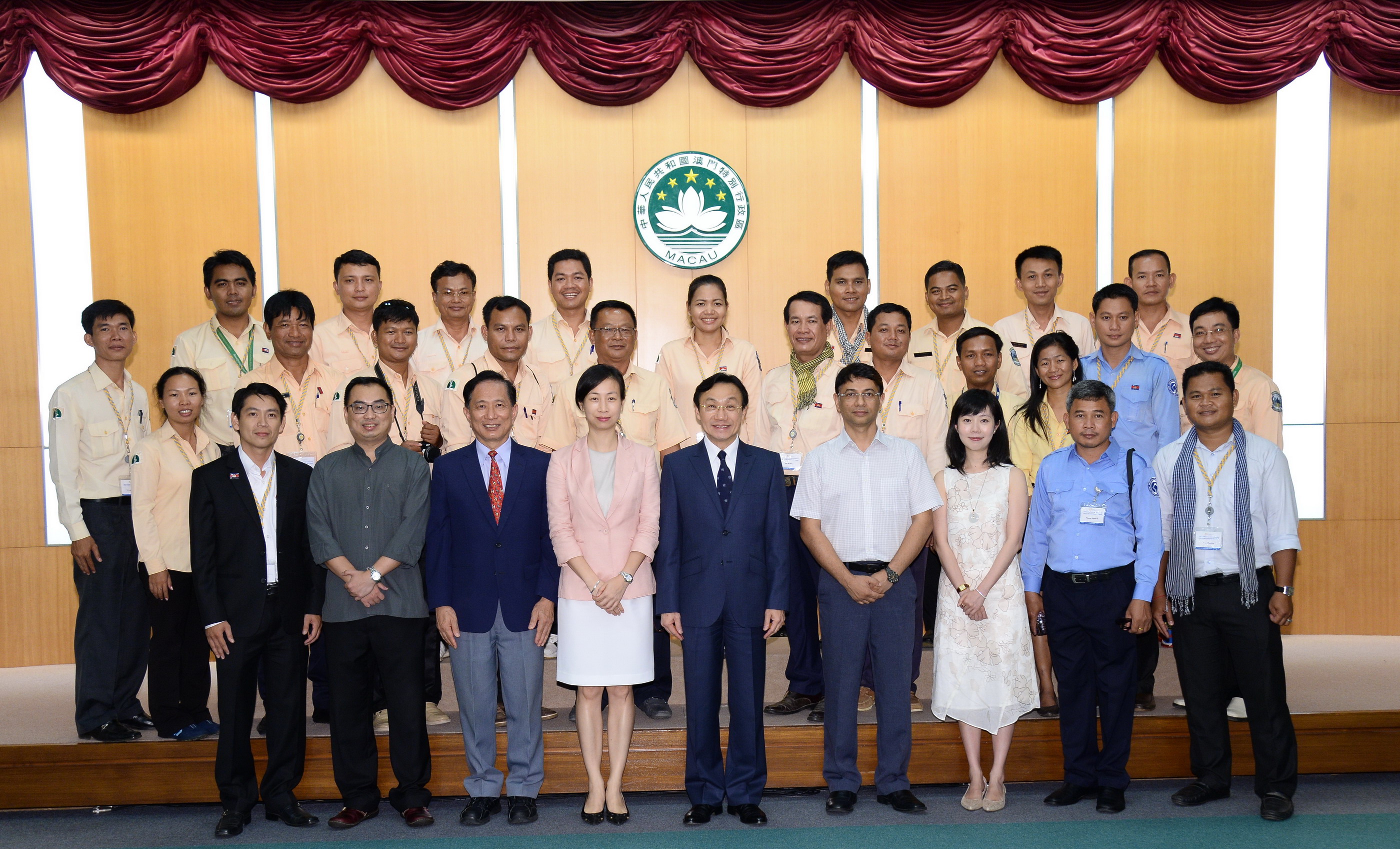 There are 4 tourism-related officials and 20 heritage tour guides to participate in the training programme which is themed the Capacity Building of Tour Guides for International Visitors at Ankor World Heritage Site, Cambodia. The programme will strengthen the professional capacity of the Cambodian heritage tour guides through lectures, workshops and visits to the world heritage sites of the Historic Centre of Macao. During their stay in Macao, the participants were received by Dr. Tam Chon Weng, Secretary for Social Affairs and Culture.