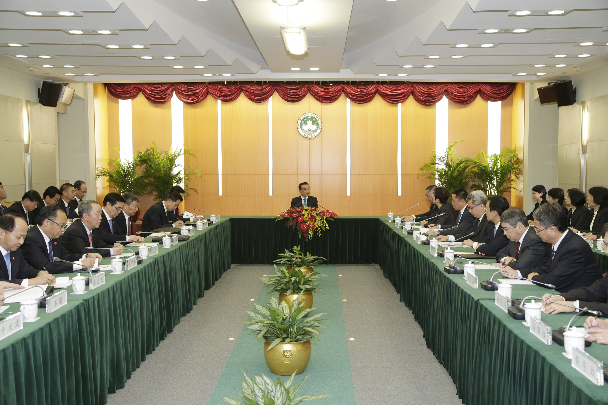 Premier Li made the comments when he was briefed on various aspects of the SAR Government’s work. The Chief Executive, Mr Chui Sai On, gave the briefing during a meeting – attended by the principal officials of the Macao SAR Government – held in the afternoon at Government Headquarters.