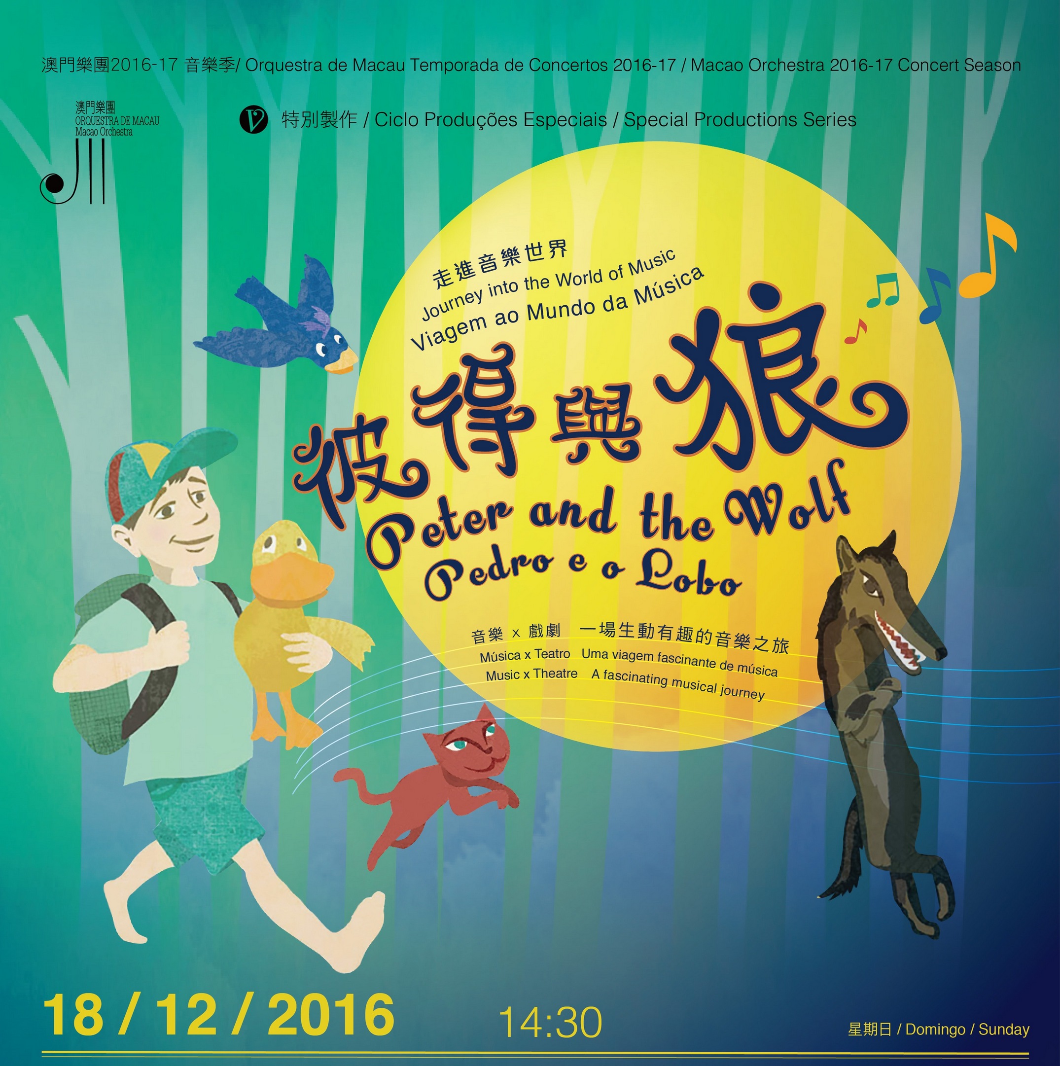 The Macao Orchestra, under the auspices of the Cultural Affairs Bureau, will present the concert “Journey into the World of Music - Peter and the Wolf” on Sunday, 18 December, at 2:30pm, at the Macao Tower Auditorium. In this concert, the Macao Orchestra plays the classical music fairy tale “Peter and the Wolf” in collaboration with Platypus Theatre from Canada, whose humorous narrative and choreography, accompanied by particular instruments, will surely encourage the imagination of both children and adults. The concert is suitable for children aged three or above, and tickets are now available at Macau Ticketing Network.