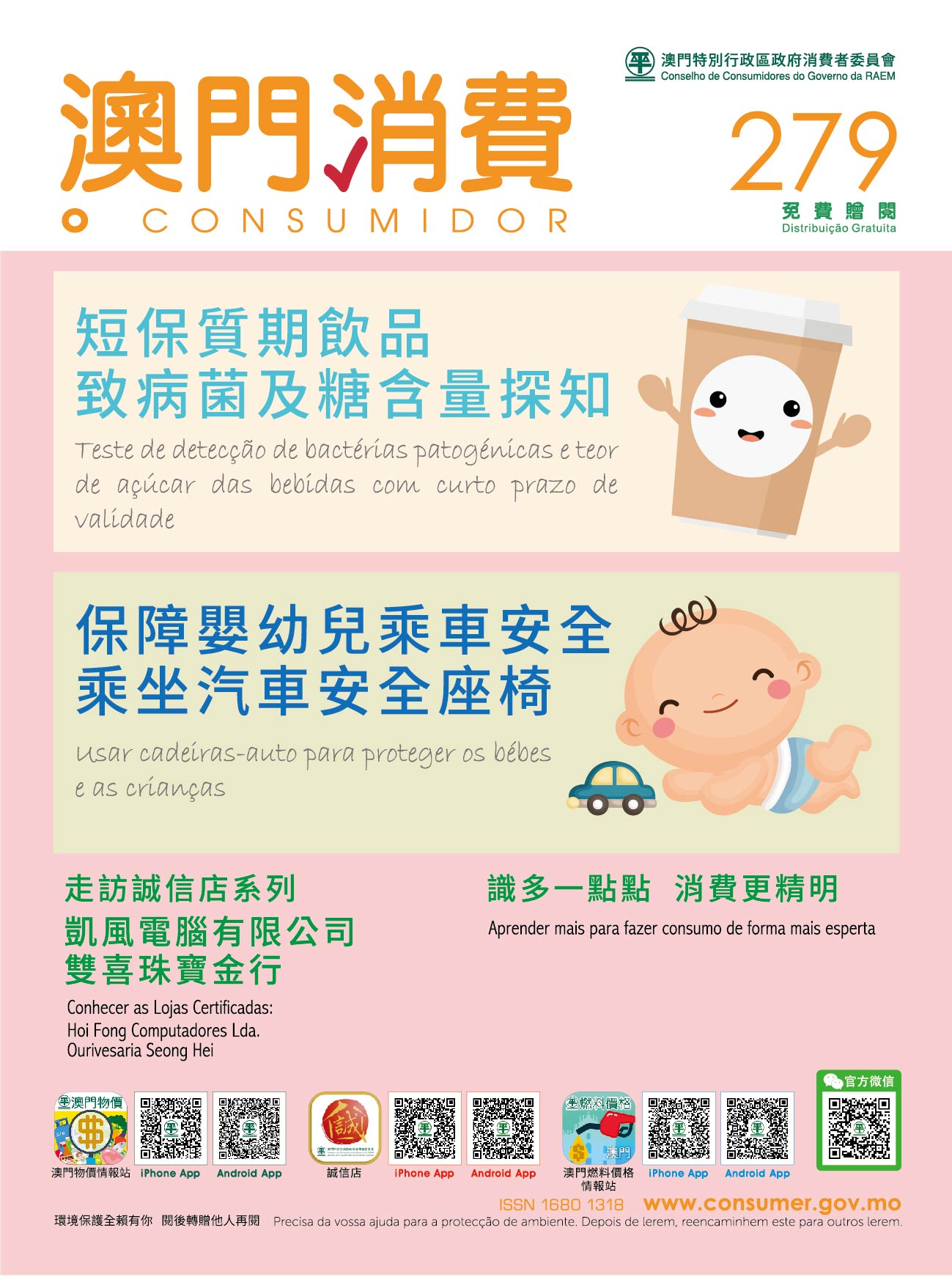 Consumer Report is now available free of charge at the Council (Av. Horta e Costa, N.º 26, Edf. Clementina Ho), and the service counter of the Council at Macao SAR Government Service Centre (Rua Nova da Areia Preta, Nº52), Public Information Centre at Vicky Plaza, libraries, and bookstores. Consumers may also access the magazine online on the Council’s official website (http://www.consumer.gov.mo) and WeChat official account.
