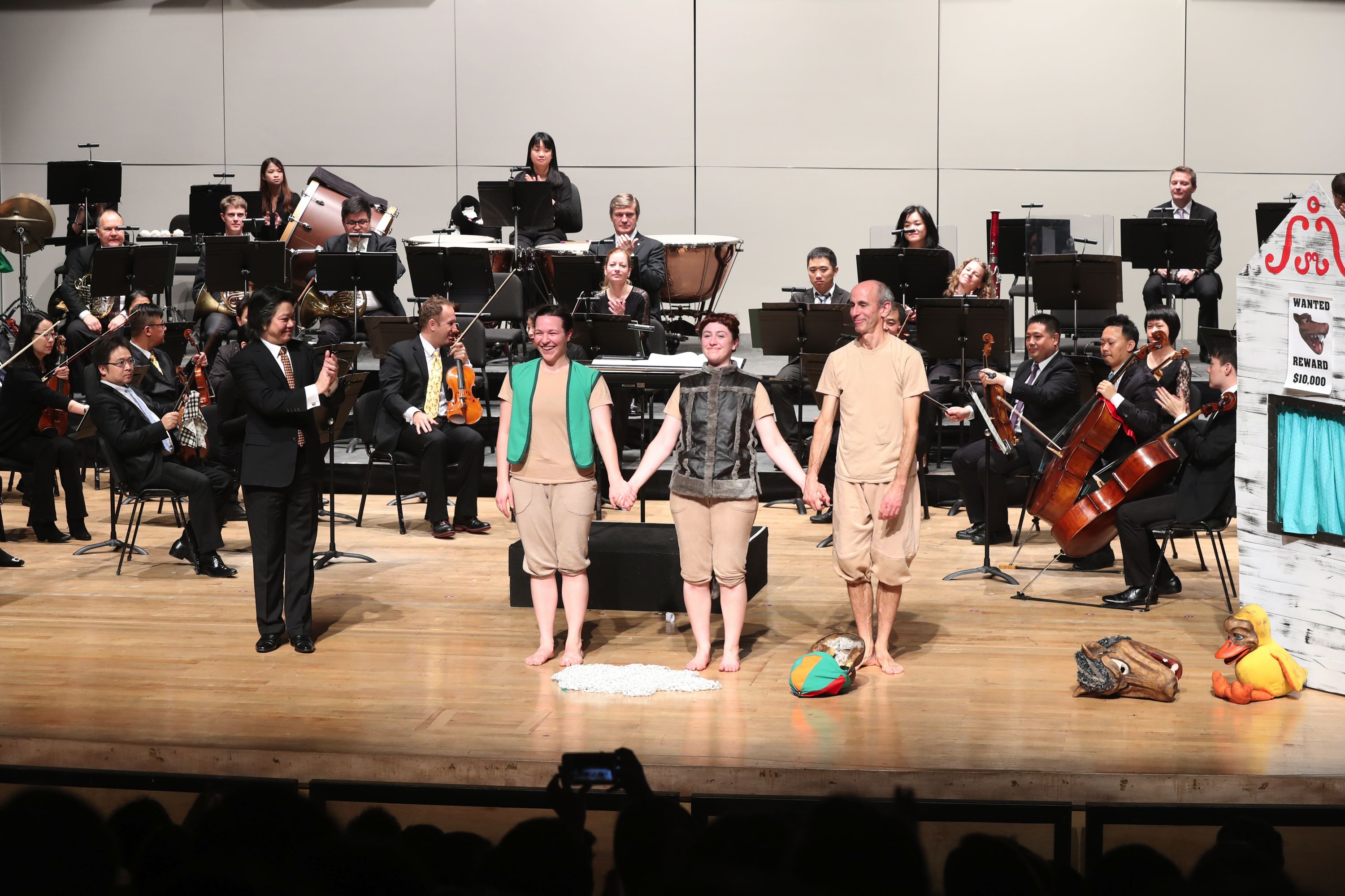 The concert series “Journey into the World of Music” is an educational series held by the Orchestra annually. This year, OM played the classical musical fairy tale “Peter and the Wolf” in collaboration with Platypus Theatre from Canada, whose humorous narrative accompanied by particular instruments, encouraged the imagination of both children and adults. The assistant conductor of the OM, Francis Kan, led this classic in a vivid way and interacted with the audience bringing joy and musical inspiration to children.
