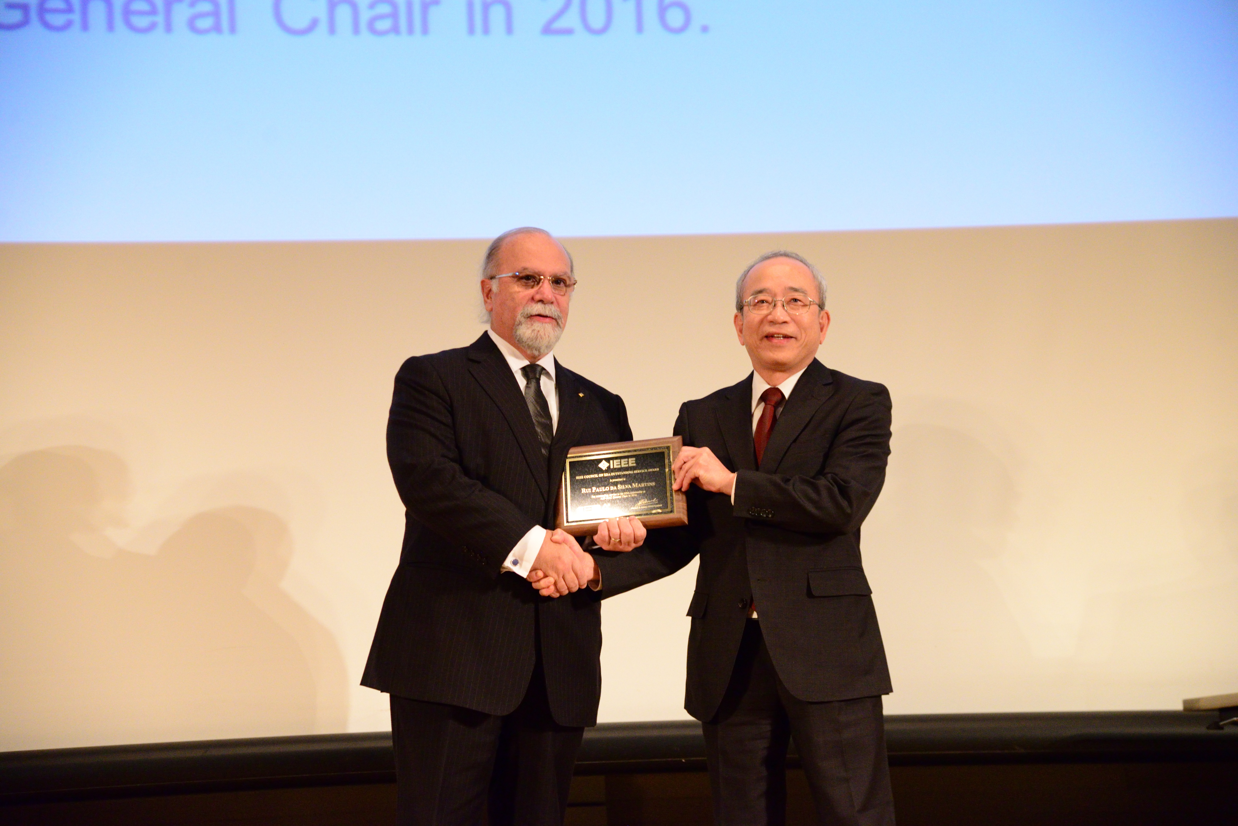 Prof Rui Martins, vice rector (research) of the University of Macau (UM) and director of the UM State Key Laboratory of Analog and Mixed-Signal VLSI (AMS-VLSI Lab), received the Outstanding Service Award from the IEEE (Institute of Electrical and Electronics Engineers) Council on Electronic and Design Automation, at the 22nd IEEE/ACM Asia and South Pacific Design Automation Conference (ASP-DAC) held in Tokyo, Japan, in recognition of his outstanding service to the electronic and design automation (EDA) community as the general chair of ASP-DAC in 2016.