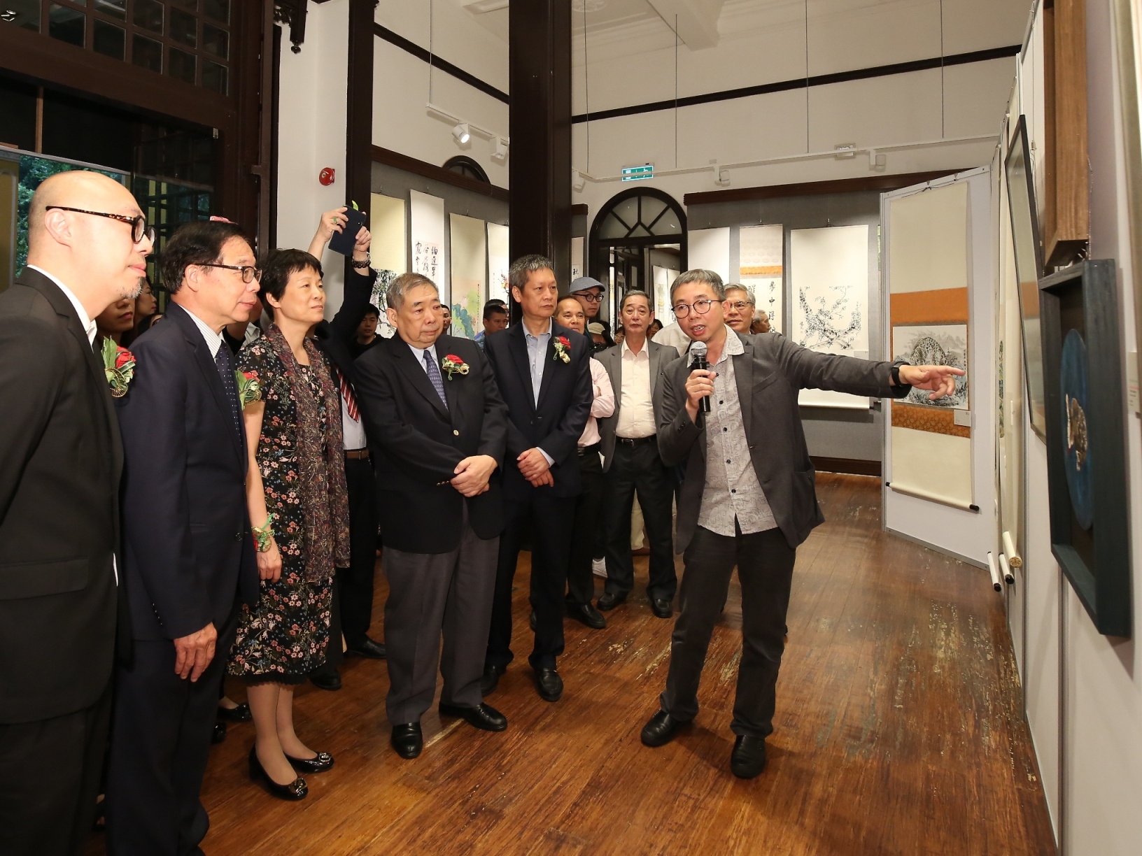 Co-organized by the Cultural Affairs Bureau and the Yu Un Chinese Calligraphers and Painters Association of Macao, the “Exhibition of Members’ Artworks of Yu Un Chinese Calligraphers and Painters Association of Macao” was inaugurated on 19 May at the Chun Chou Tong Pavilion of Lou Lim Ioc Garden. The opening ceremony was attended by the Director of the Department of Education and Culture of the Liaison Office of the Central People’s Government in the Macao S.A.R, Xu Ting; the Acting President of the Cultural Affairs Bureau, Kent Ieong Chi Kin; the President of the Macau Artist Society, Lai Ieng; the General Manager of the Macao Daily News, Wan Nang Hon and the President of Yu Un Chinese Calligraphers and Painters Association of Macao, Chui Sai Cheong.